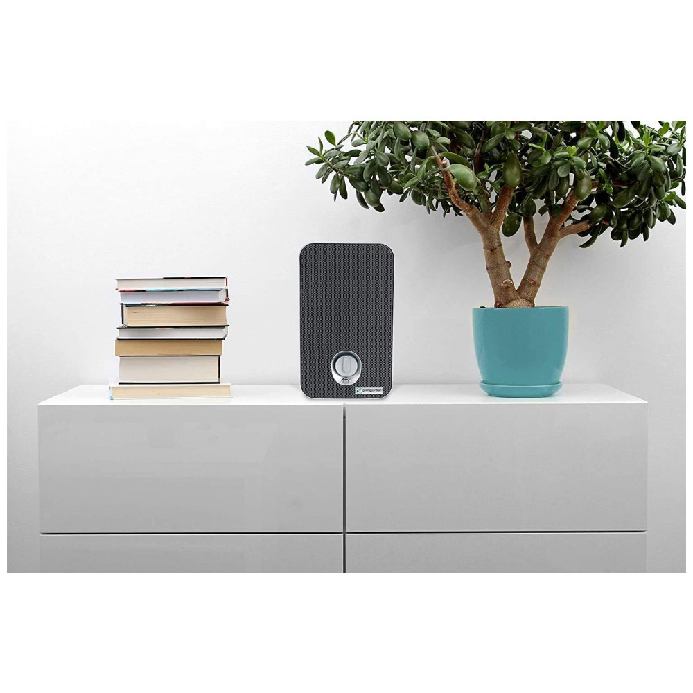 CONFIGURAÇÕES FÁCEIS DE USAR Este purificador de ar de mesa apresenta um design ultras silencioso com 3 configurações de velocidade convenientes de baixa, média ou alta. Durma profundamente enquanto seu ar é purificado