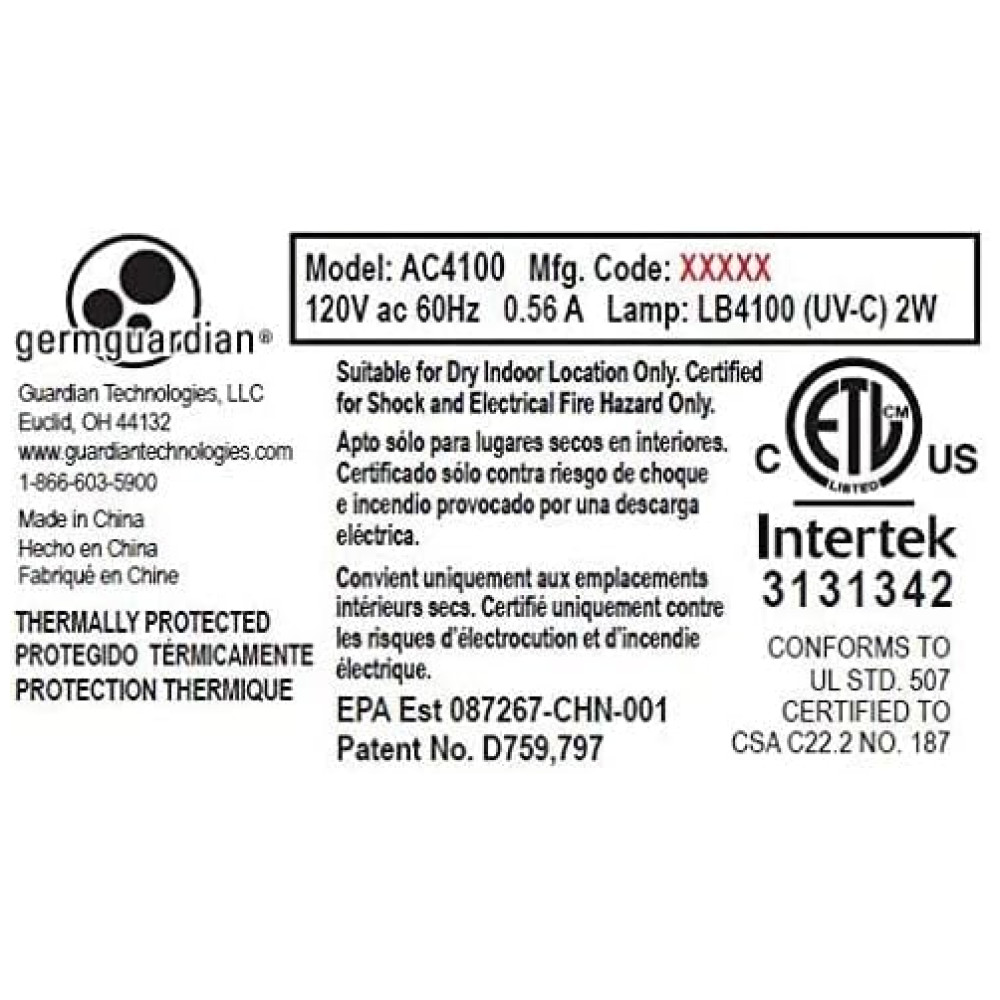 Cor:Cinza; Voltagem:110v; Marca:GermGuardian; Modelo:AC4100; Condição do item:Novo;