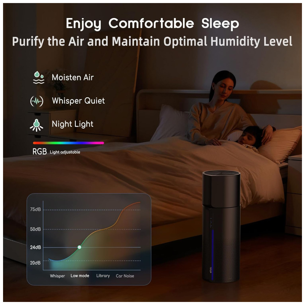 Função Luz Noturna Você pode decidir se precisa da função de iluminação. A luz noturna quente com 2 configurações de brilho cria uma atmosfera agradável para dormir limpa silenciosamente o ar do quarto durante o sono.