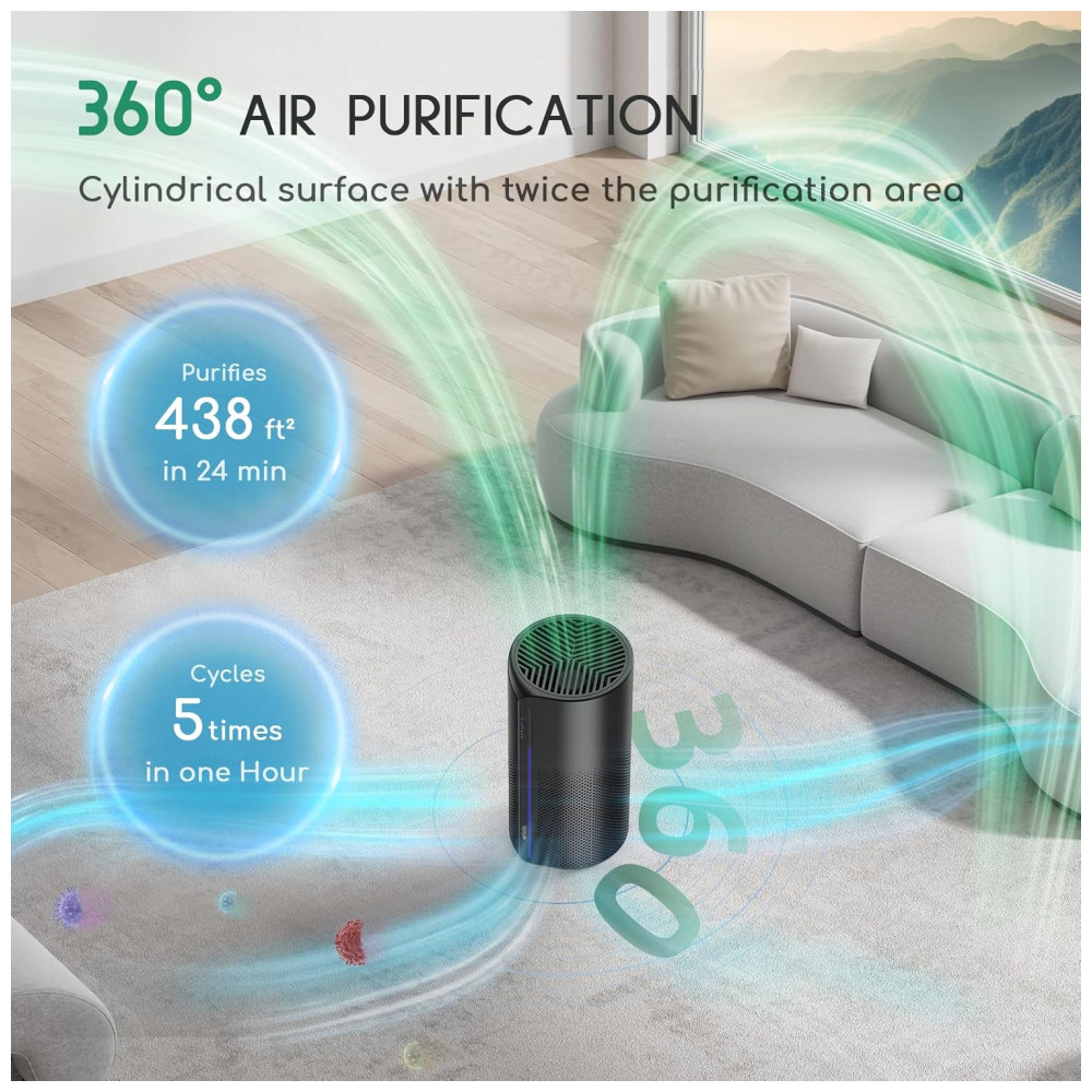 Purificador de Ar com Filtro H13 HEPA Luz Ajustavél Área 40 m2 AFLOIA miropro Preto