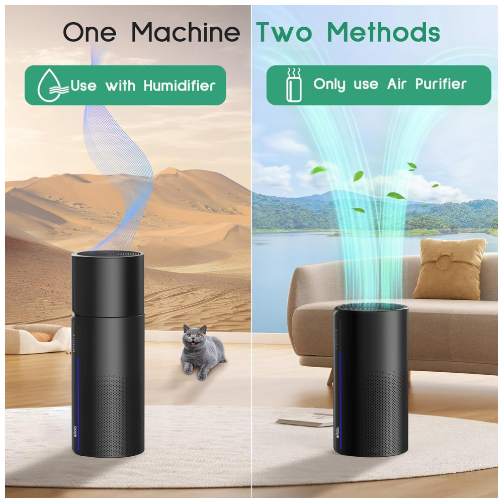 Projetado separadamente MIRO PRO é a versão atualizada do MIRO. É purificador de ar e umidificador em uma máquina. O corpo principal é o purificador de ar, o umidificador é instalado no purificador de ar e fixa a serrilha inferior. O módulo do umidificador é independente e destacável, e a retirada do módulo não prejudica o uso do purificador de ar sozinho. Nota o módulo umidificador não pode ser de forma independente