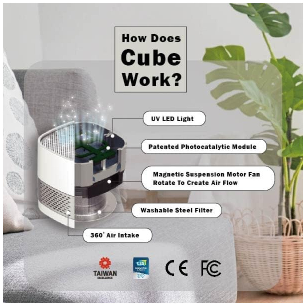 Purificador de Ar LUFTQI Cube é um purificador de ar sem filtro que pode neutralizar poluentes, odores e convertê los em água e dióxido de carbono. A cola de gás orgânico no PM2.5, a matéria orgânica na fumaça do cigarro e o odor ao redor da vida são decompostos. NOSSO purificador de ar para fornecer ar purificado adjacente ao seu espaço respiratório. Com a tampa de ventilação de acessório permite que você escolha a direção do ar limpo
