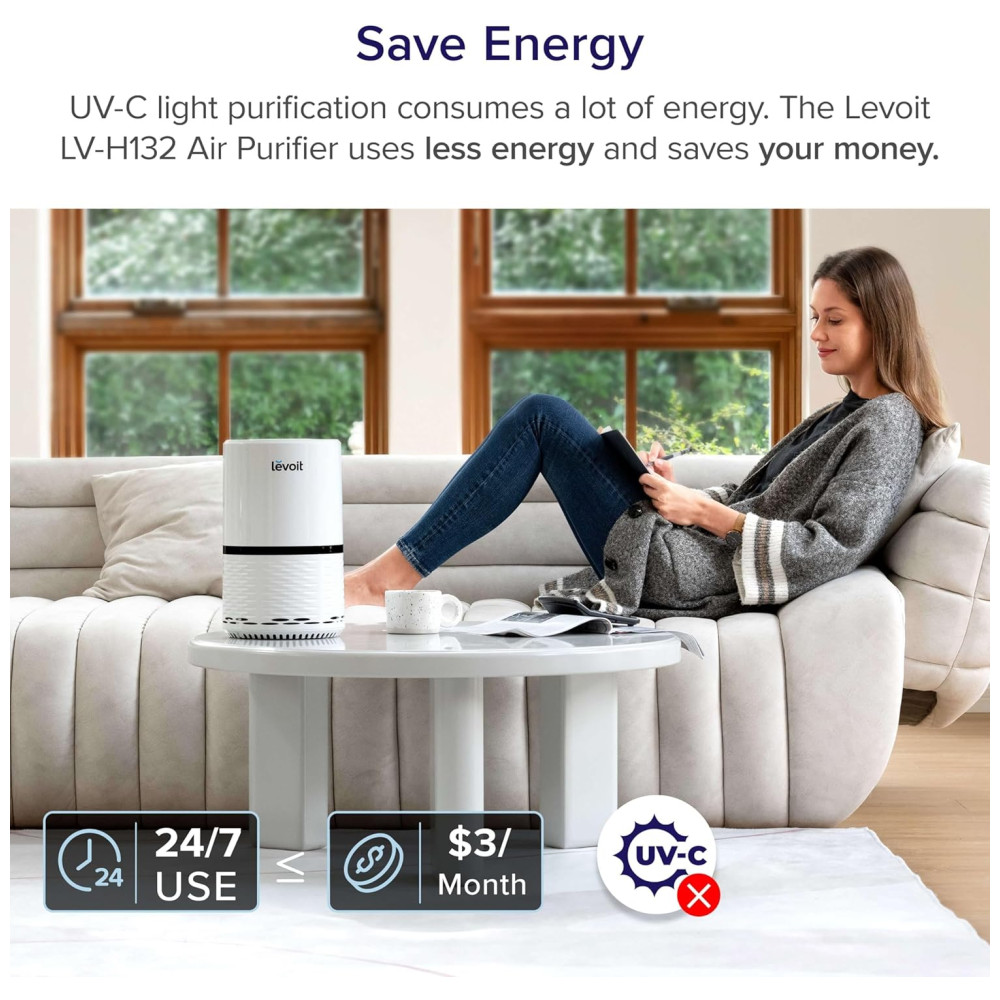 Purificador de Ar com Filtro HEPA Área até 12 m2 LEVOIT LV H132 Branco
