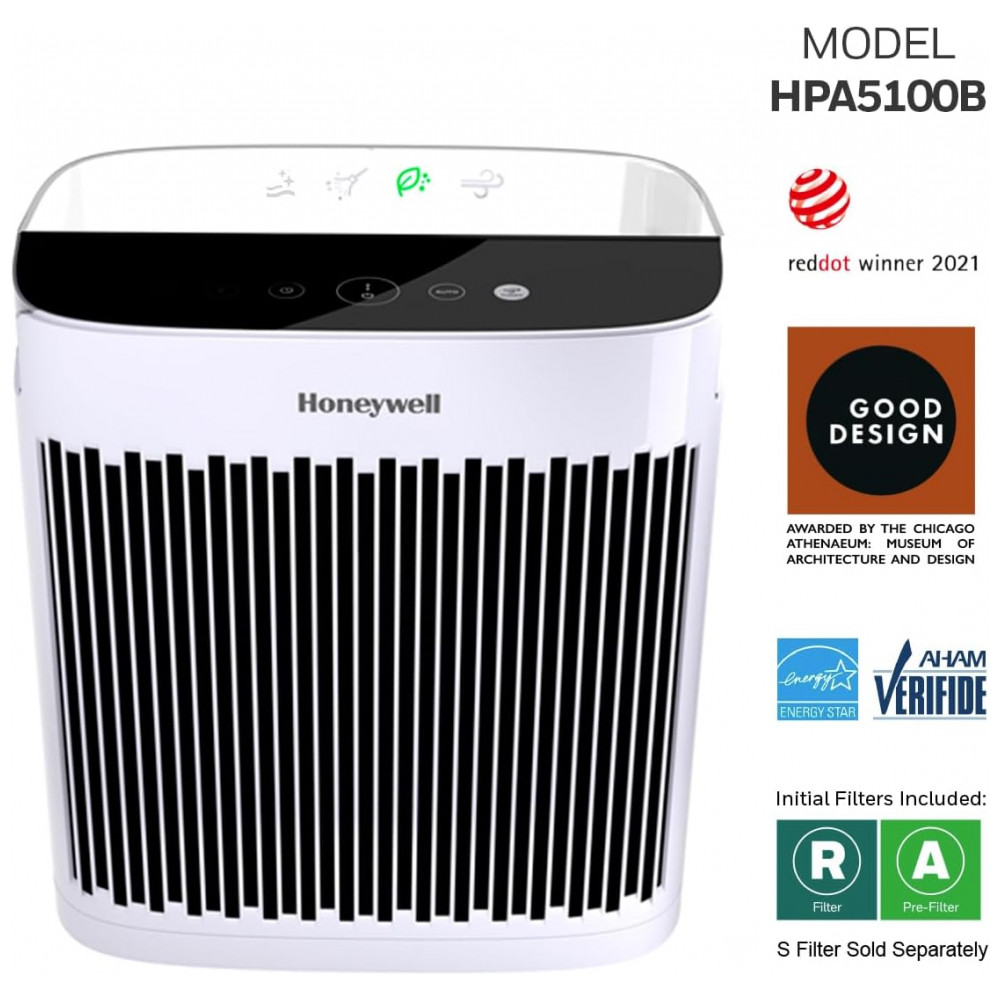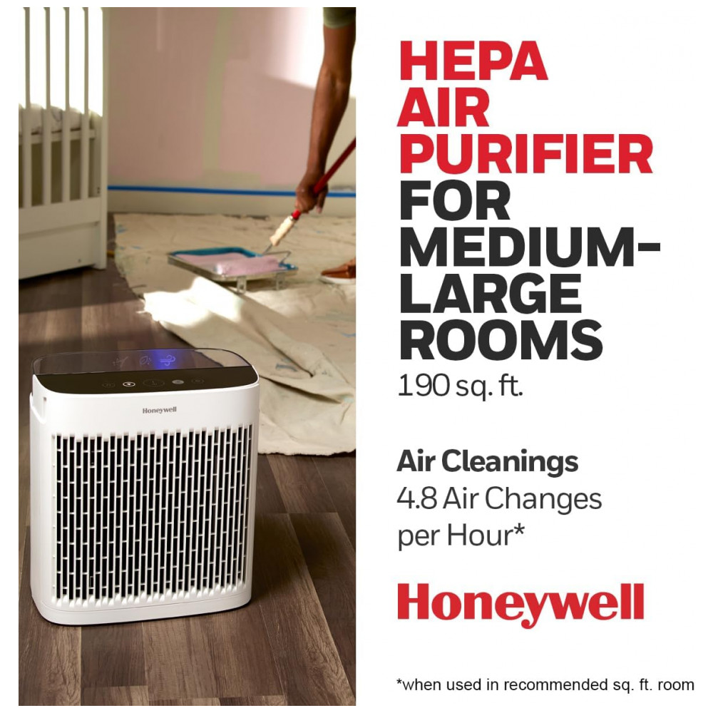 PODEROSO PURIFICADOR DE AR DE AMBIENTE MÉDIO GRANDE O purificador de ar Honeywell HPA5100 HEPA ajuda a fornecer um ar mais limpo e fresco. Recomendado para salas médias 190 pés quadrados. A filtração HEPA ajuda a capturar até 99,97 dos alérgenos e partículas microscópicas transportadas pelo ar.
