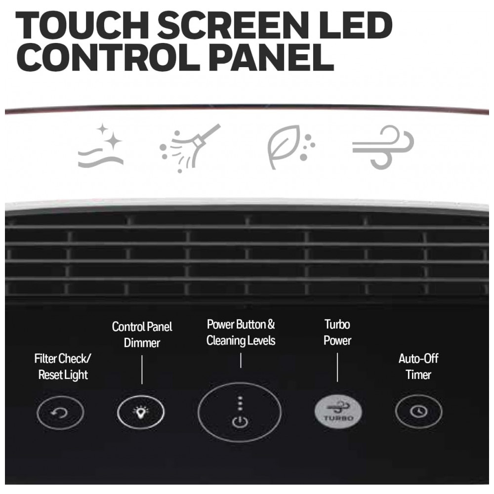 AJUDA A REDUZIR ALÉRGICOS Este purificador de ar HEPA tem 4 níveis de limpeza, incluindo Turbo Clean. Ele ajuda a capturar os seguintes alérgenos e partículas microscópicas transportadas pelo ar poeira, pólen, pêlos de animais, detritos de ácaros e fumaça.