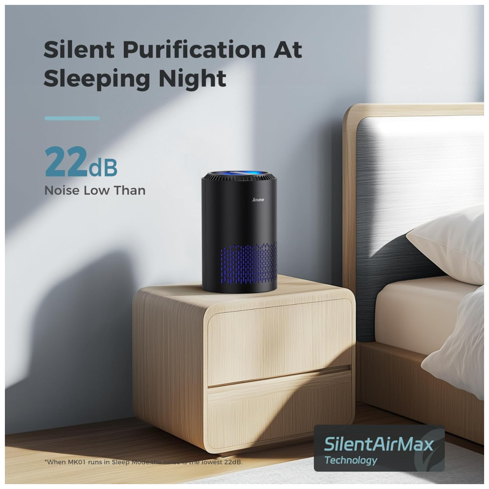 Operação de baixo decibel Ligue o modo de suspensão do purificador e o ventilador será reduzido para a velocidade mais baixa. Você não ouvirá mais nenhum som, mas a falta do purificador está realmente funcionando. O ruído do ar filtrado é tão baixo quanto 22db, perfeito para um ambiente interno silencioso e relaxante
