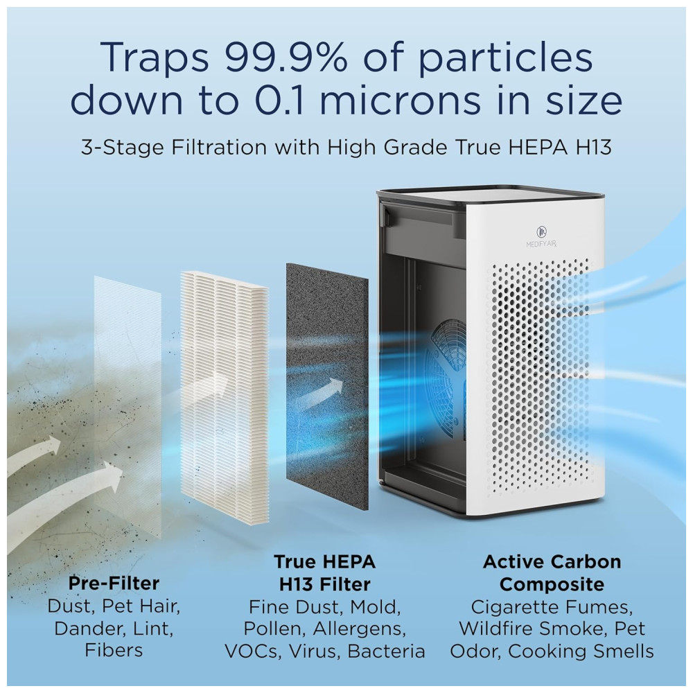 Filtros H13 poderosos Um grau superior de HEPA avaliado mais alto que o HEPA verdadeiro. Respire fácil com remoção de partículas de 99,9.
