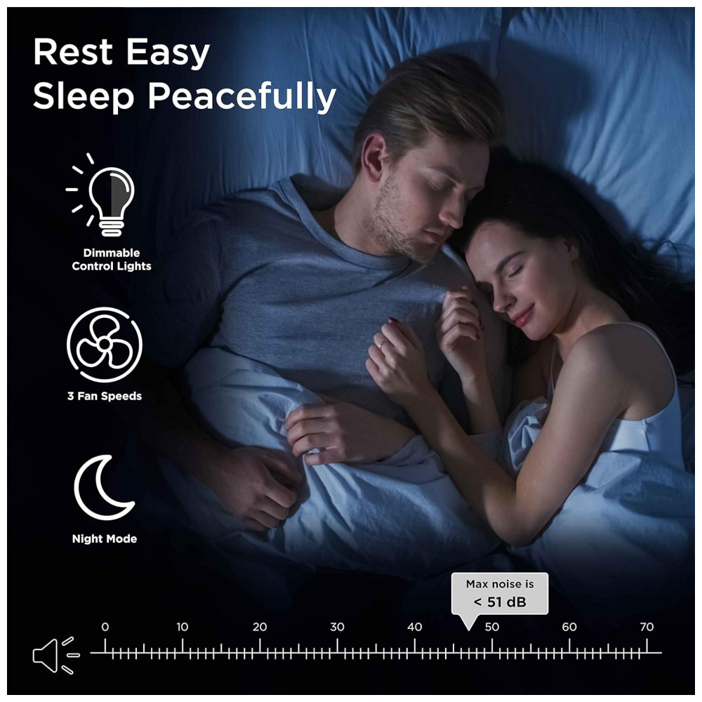 Painel de vidro temperado como o seu telefone celular, fácil de limpar, não risca como os modelos de plástico baratos, borda chanfrada, 3 velocidades do ventilador, temporizador de 8 horas, modo noturno, bloqueio para crianças