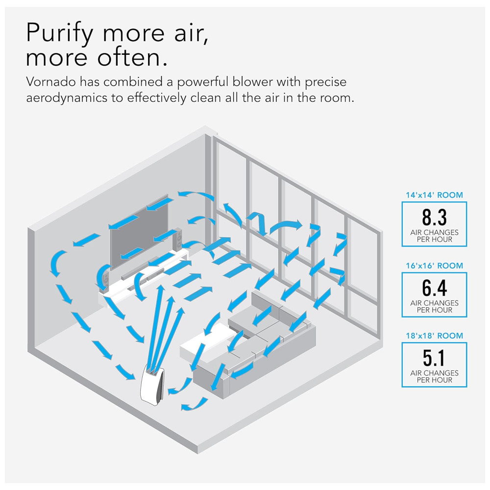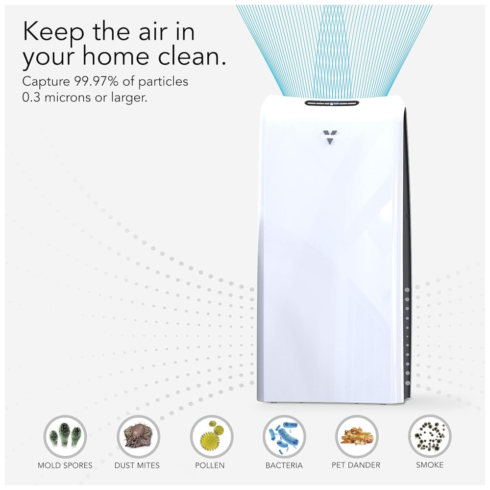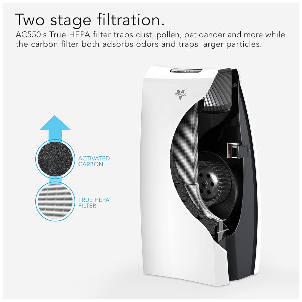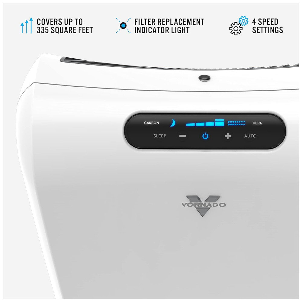 Purificador de ar com filtro HEPA verdadeiro captura alérgenos fumaça odores pólen poeira esporos de fungos pêlos de animais VORNADO AC1 0039 43 Branco