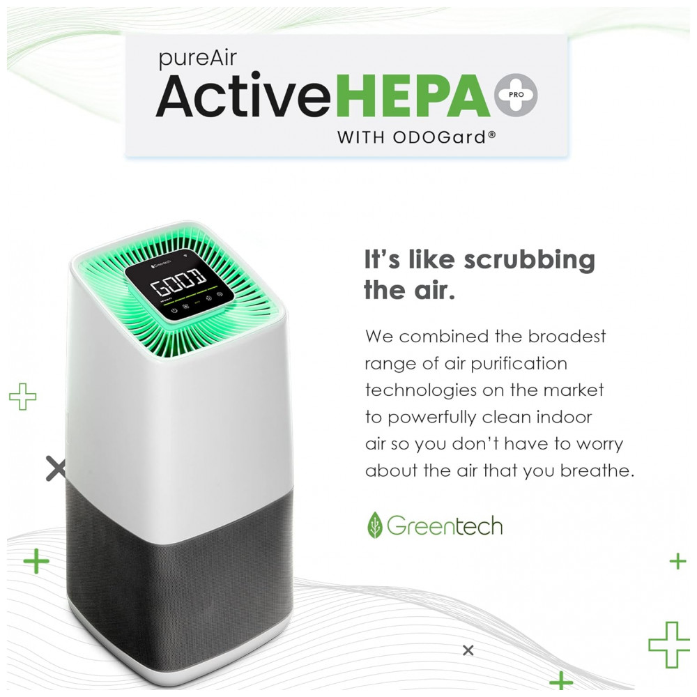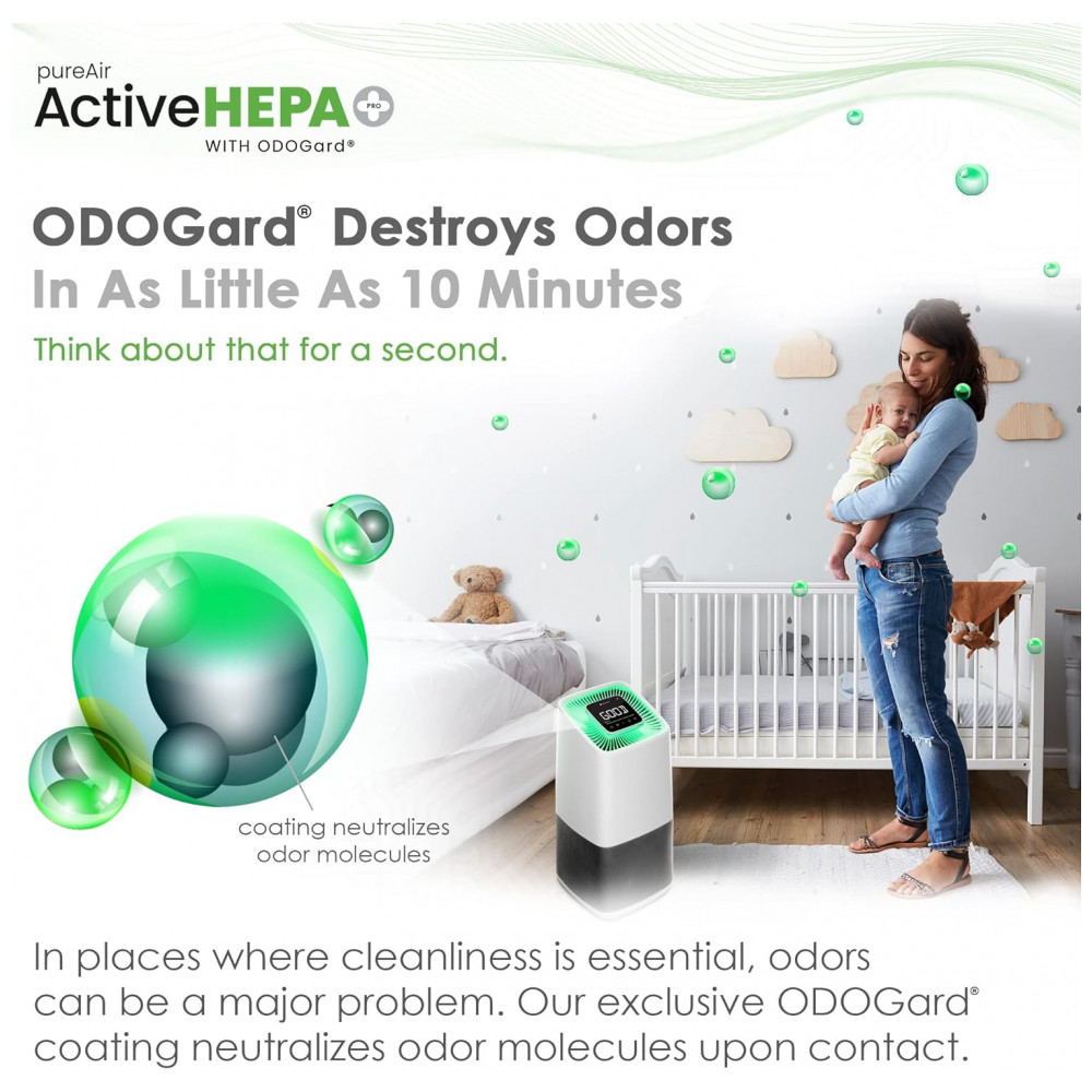 MELHOR DO PARA REMOÇÃO DE ODORES A linha Active HEPA é o único filtro de ar disponível com o poder de eliminação de odores do ODOGard. Esta tecnologia é feita para todos os problemas de ar interno de animais de estimação, cozinhar, fumar e muito mais.
