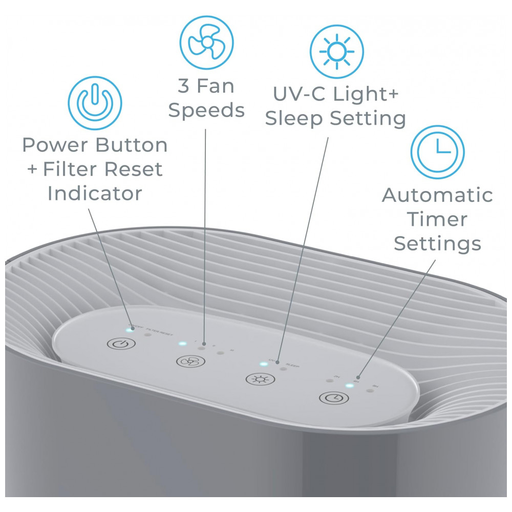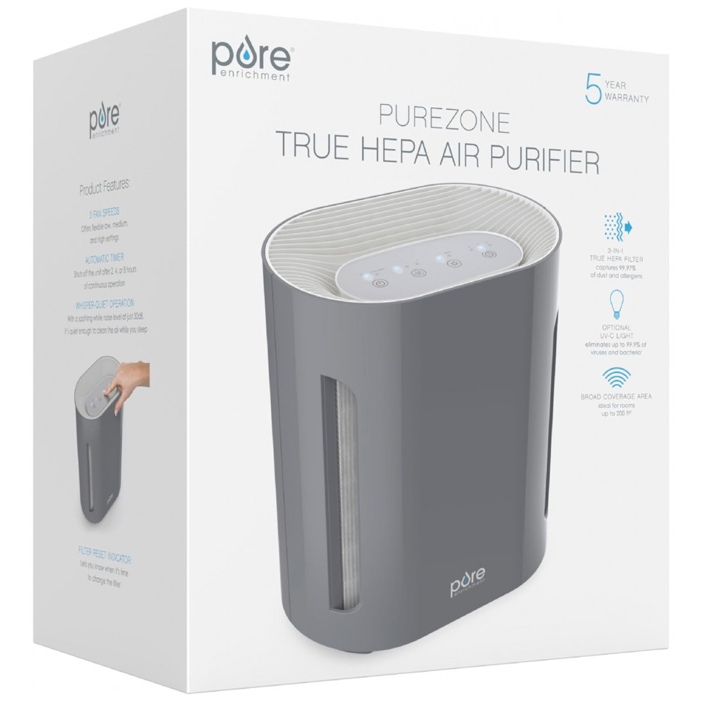 Purificador de Ar com Filtro True HEPA H13 Área até 27 m2 Pure Enrichment Cinza