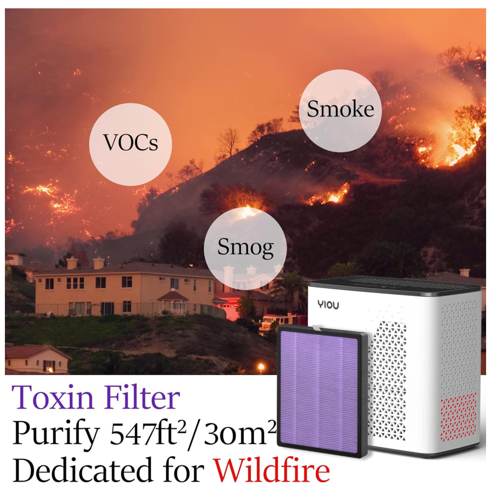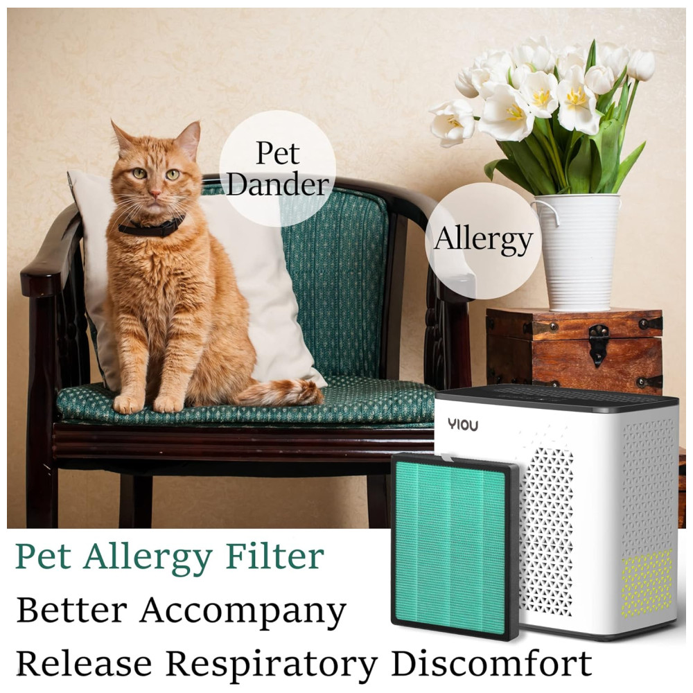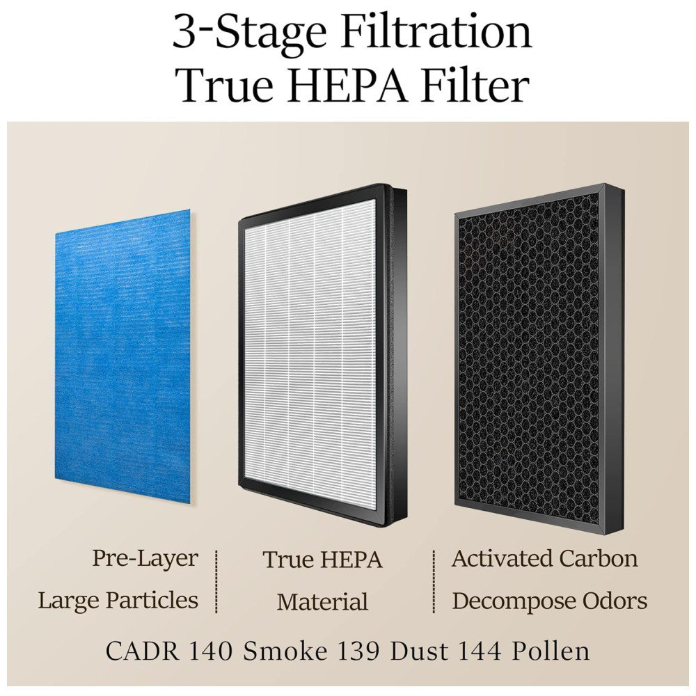 Filtro True HEPA de 3 estágios composto por pré camada, camada H13 true HEPA e camada de carvão ativado, o filtro de ar YIOU pode capturar grandes partículas transportadas pelo ar e decompor odores desagradáveis para aliviar o desconforto respiratório. Pesquise B0972641SV para substituição do filtro.