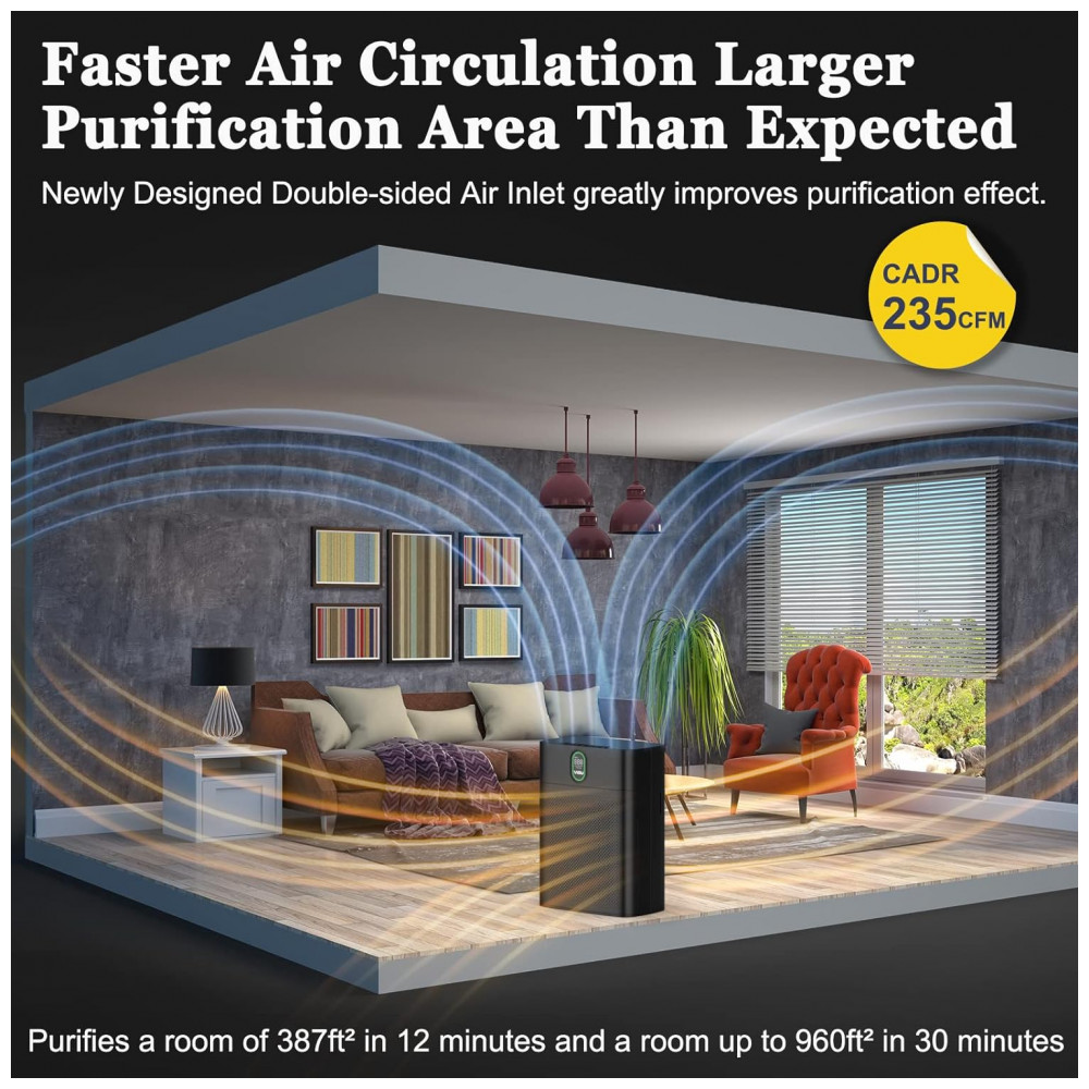 Purificador de Ar com Filtro True HEPA H13 Área até 90 m2 YIOU Preto