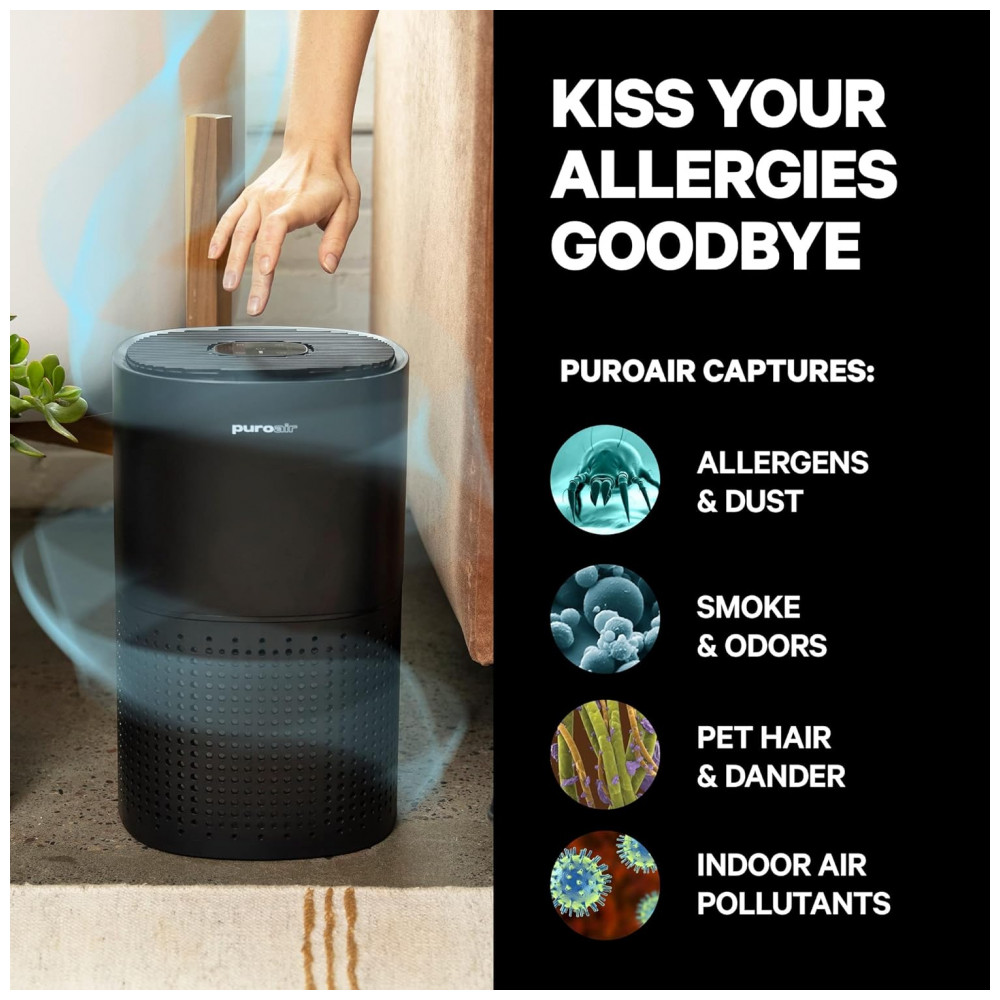 LIMPA O AR AUTOMATICAMENTE Um sensor de partículas inteligente monitora a qualidade do ar para você e ajusta para aumentar a potência se o ar poluído for detectado. Perfeito para qualquer sala. Relaxe e deixe o PuroAir filtrar o ar da sua casa, melhorando suas alergias, asma e qualidade do sono. Inclui um temporizador, velocidade do ventilador, modo de suspensão, indicador de substituição do filtro e trava para crianças, ótimo para crianças e animais de estimação