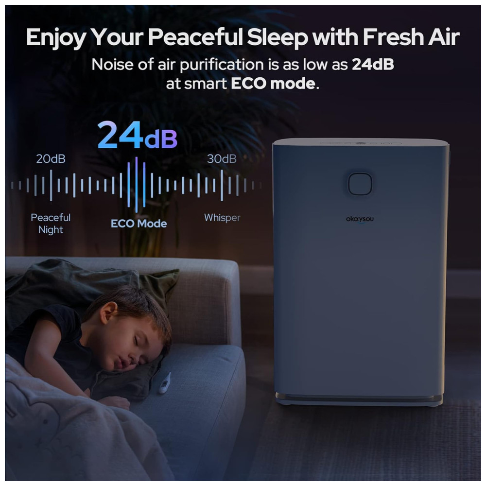 Purificador de Ar com Função Automática Monitora a Qualidade do Ar e Área até 90 m2 Okaysou Branco