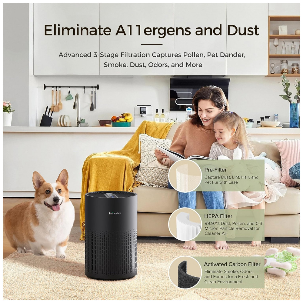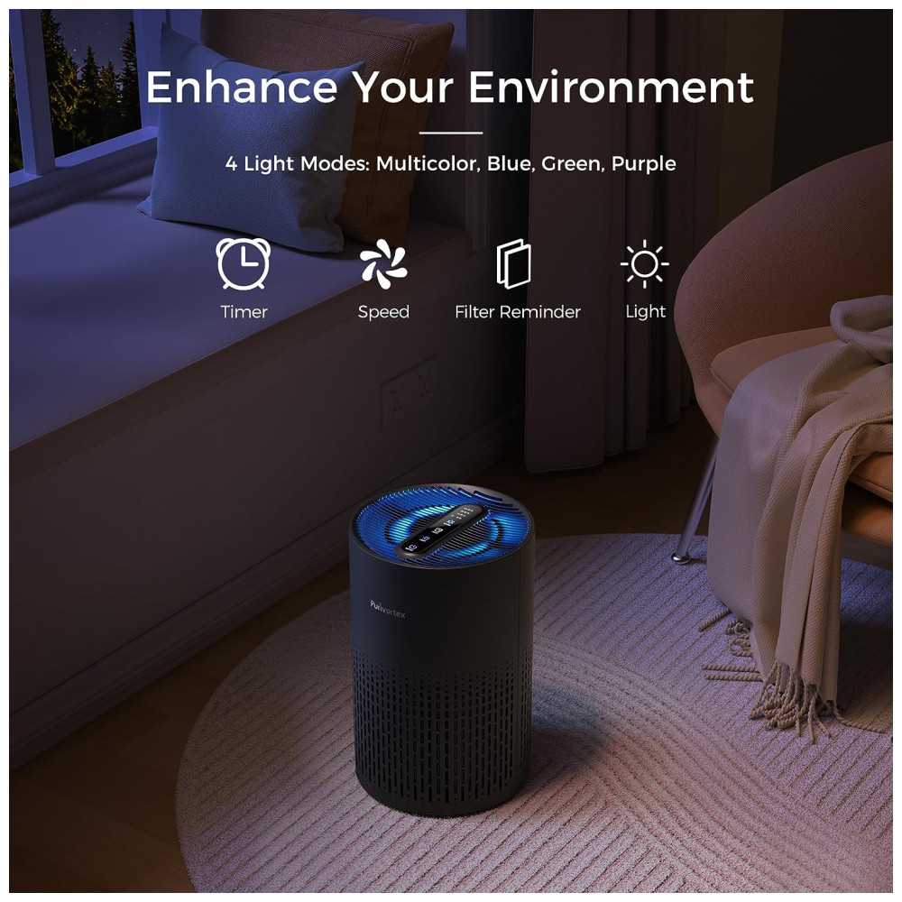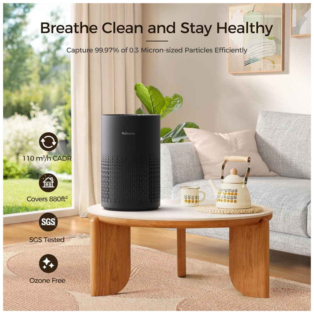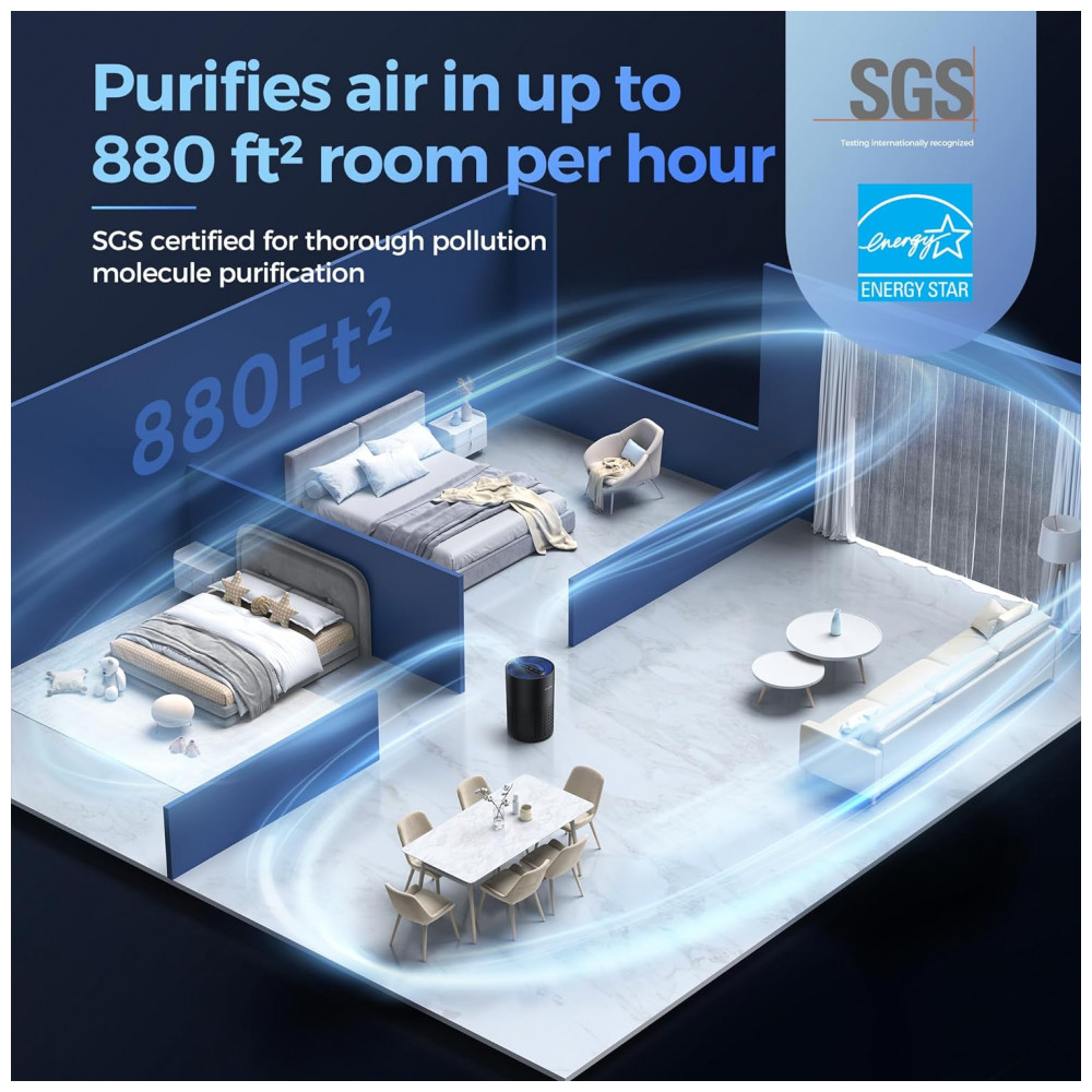 Purificador de Ar de Quarto com Filtro HEPA H13 para Pólen Fumaça Odor 110V v Preto