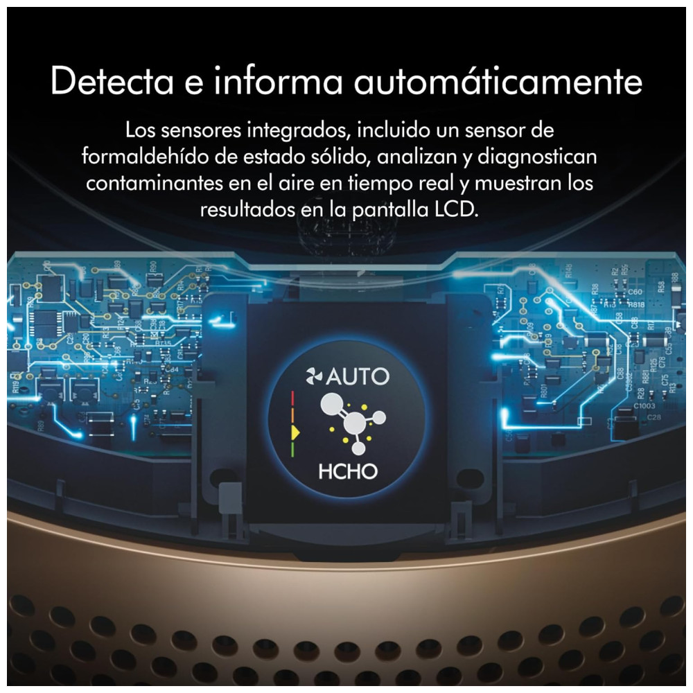 Senti e reage automaticamente a mudanças na qualidade do ar e relata poluição em tempo real na tela LCD e no aplicativo MyDyson.