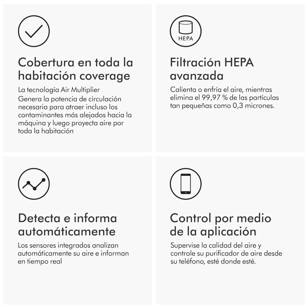 A tecnologia Air Multiplier gera o poder de circulação para atrair poluentes distantes para a máquina, projetando ar purificado por toda a sala.