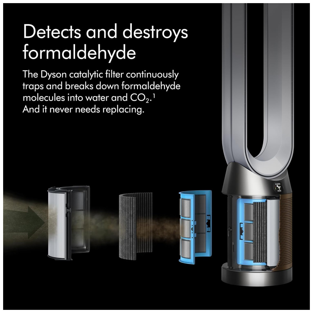 O Dyson HEPA Cool Formaldehyde é projetado com o sistema de filtragem mais avançado da Dyson que combina um sensor preciso de formaldeído de estado sólido com um filtro catalítico exclusivo que destrói continuamente o formaldeído.A tecnologia Multiplicador de ar poderoso purifica o ar por toda a sala.