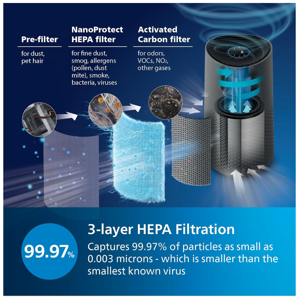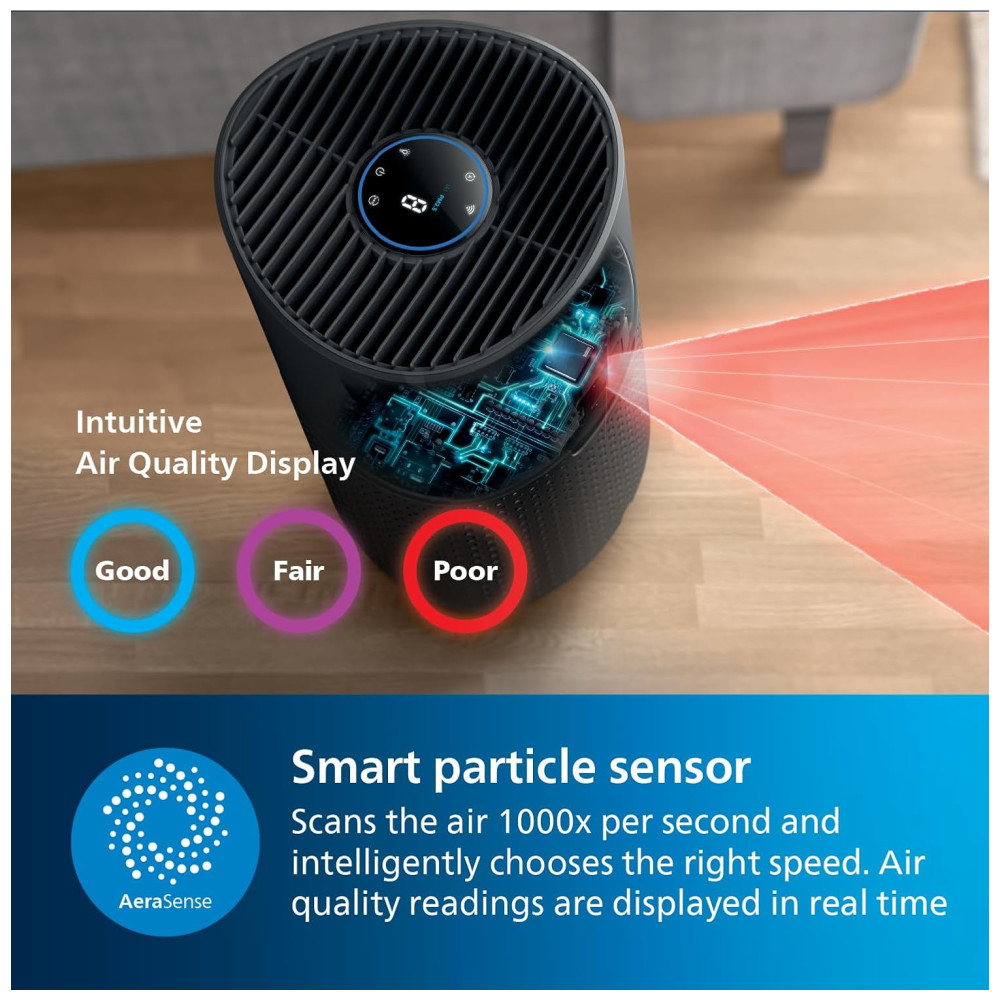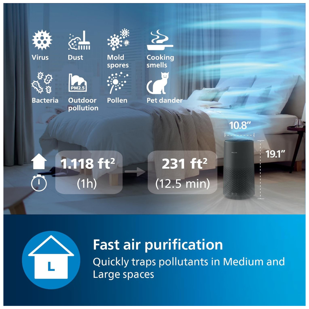 Purificador de Ar Eficiente e Compacto Para Até 103M2 com 149 CMF CADR e Filtro de Carbono Ativo 110V Philips Série 1000 Cinza Escuro