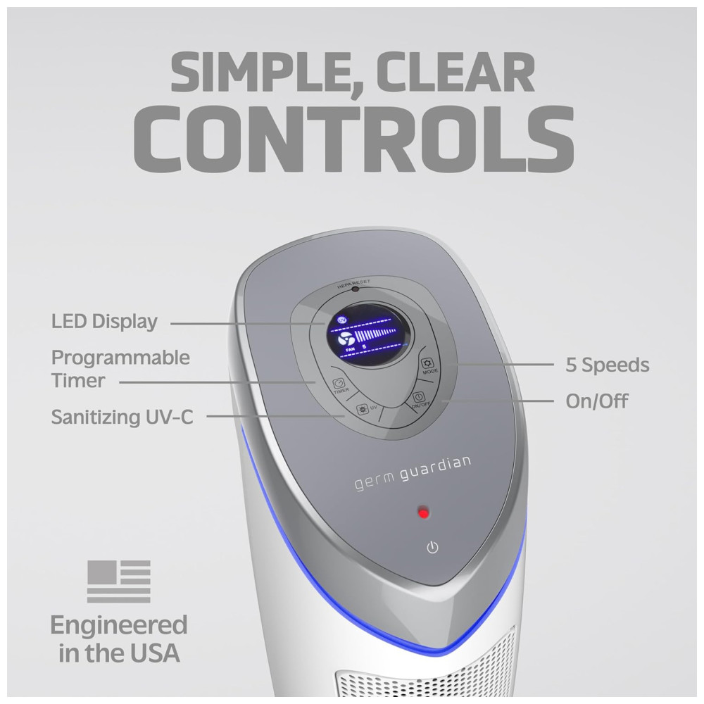 Purificador de Ar GermGuardian com Filtro True HEPA Pet Pure Remove 9997% dos Poluentes Ideal para Alergias Cobertura de Grandes Ambientes de até 85m² em 1 Hora.