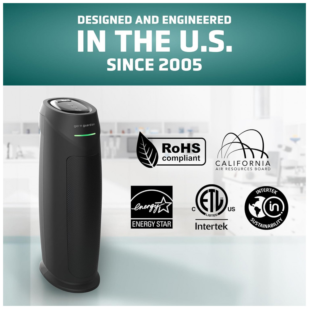 Purificador de Ar GermGuardian HEPA para Casa Quartos Grandes com Filtro de Ar HEPA PURO Monitor de Qualidade do Ar Luz UVC A