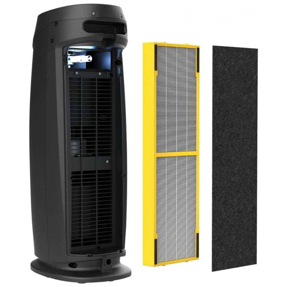 RESPIRE AR FRESCO E LIMPO O purificador de ar GermGuardian Intelligent Tower ajuda a reduzir germes e vírus, filtrar odores e capturar alérgenos com 3 camadas de proteção. Com um filtro HEPA PURO genuíno, luz UVC opcional e um pré-filtro de carvão ativado, este purificador de ar proporciona ar refrescante para sua casa. Seu conforto em casa pode ser personalizado no painel de exibição de sete segmentos com modo automático, 3 configurações de velocidade e modo ultra silencioso na velocidade mais baixa. O indicador de qualidade do ar Intellisense mede a qualidade do ar 60 vezes por minuto. Ele ajusta automaticamente a velocidade do ventilador quando detecta ar ruim e pode monitorar a qualidade do ar 24 horas por dia. Circula o ar em um cômodo de 14 m² a cada 12,5 minutos ou em um cômodo médio a grande de 69 m² a cada hora, tornando-o ideal para quartos, escritórios, porões e outros espaços de conceito aberto. Seu purificador é tão poderoso e eficaz quanto o filtro que você coloca dentro, e nossas peças de reposição genuínas da GermGuardian são essenciais para manter o desempenho do produto. Cada filtro ou lâmpada é projetado especificamente para uma unidade específica. Além de se encaixarem perfeitamente, as peças de reposição genuínas também possuem a tecnologia combinada para se igualar. Peças de Reposição FLT4825 Filtro HEPA B, filtros especiais adicionais FLT4850PT, FLT4825VO e FLT4825SM, Filtro de Carbono FLT22CB4 e Lâmpada UVC LB4000. Purificador de Ar com Filtro HEPA Equipado com um filtro de ar HEPA de alta eficiência, este purificador de ar para grandes ambientes captura eficientemente 99,97 das partículas tão pequenas quanto 0,1 mícron, retendo alérgenos como poeira, pólen e pelos de animais. Seu Ar de Confiança Equipado com um monitor de qualidade do ar Intellisense, este purificador de ar HEPA mede a qualidade do ar 60 vezes por minuto usando um sensor PM 2,2 e ajusta automaticamente sua velocidade ao detectar ar ruim, para que você possa desfrutar constantemente de ar limpo. Filtração Focada em Casa Um purificador de ar ideal para quartos e espaços de convivência, este poderoso purificador de ar doméstico circula e filtra o ar em pequenos cômodos de 14 m² a cada 12,5 minutos e em grandes cômodos de 69 m² a cada hora. Desodorizante de Ambiente Confiável Equipado com um filtro de carvão ativado, este purificador de ar HEPA captura e absorve compostos orgânicos voláteis juntamente com poeira, pelos de animais e outras partículas grandes, reduzindo eficazmente odores de fumo, cozimento e animais de estimação. Projetado e Testado Independente nos EUA Nossas unidades estão entre os melhores purificadores de ar para uso doméstico. Projetados e fabricados nos EUA, são certificados pela CARB (California Air Resource Board), certificados pela ETL e verificados sem ozônio.