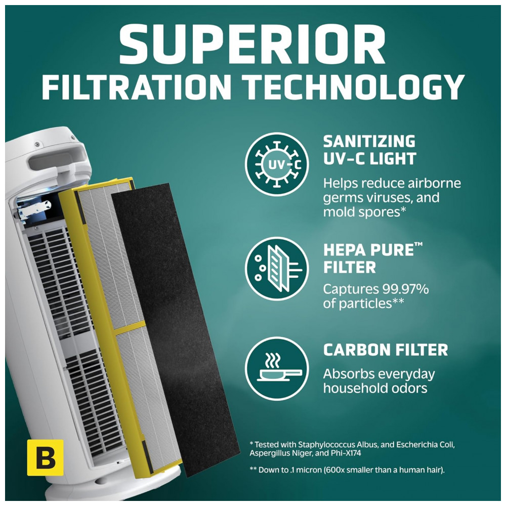 Característica Especial: Filtro Genuine HEPA Pure, Limpeza de até 69 metros quadrados, Luz UV-C, Modo Noturno, 3 Velocidades,