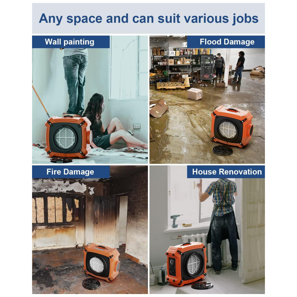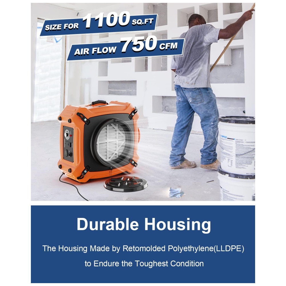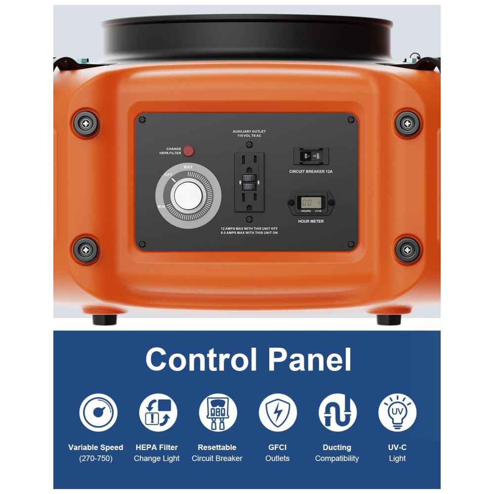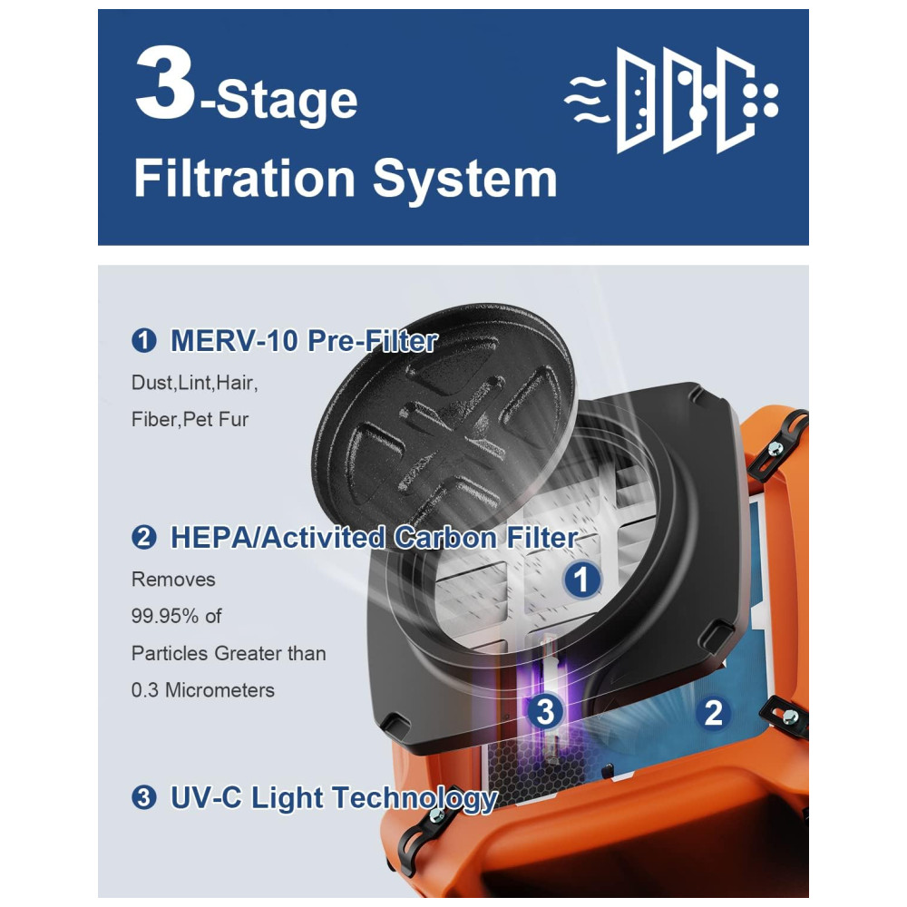 Purificador de Ar Industrial com Filtragem HEPA de 3 Estágios e Saída GFCI 115V Alorair HEPA Max 970 Laranja
