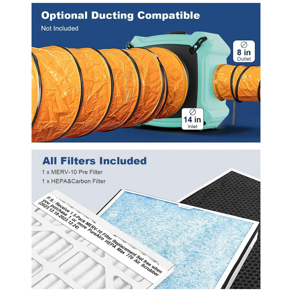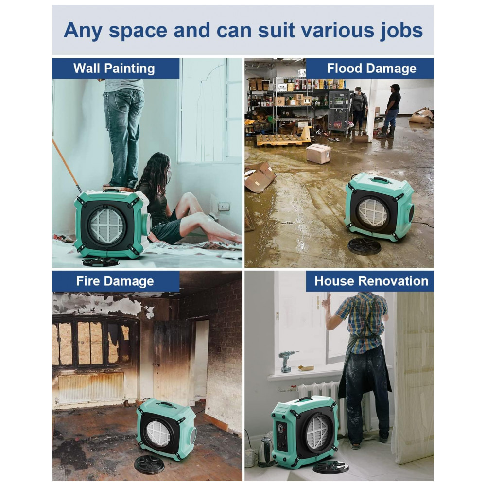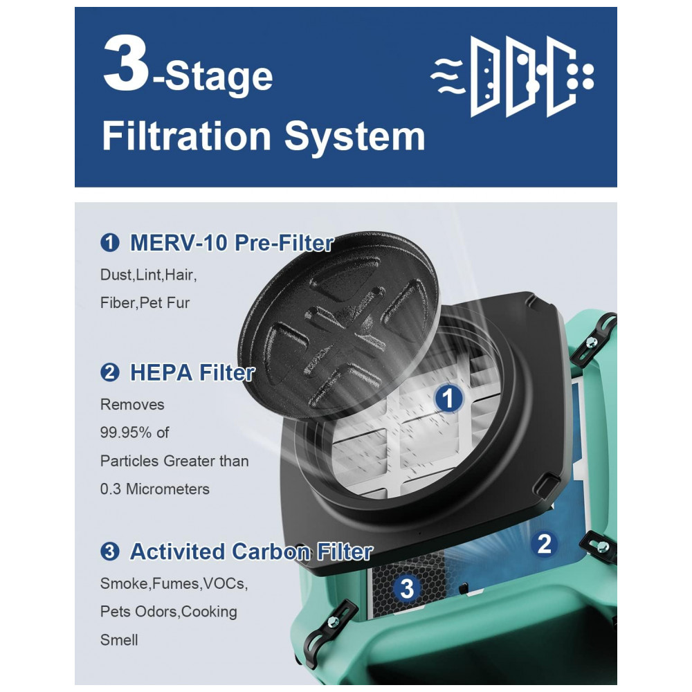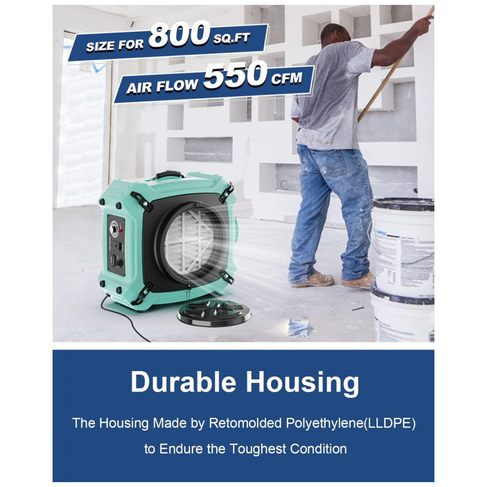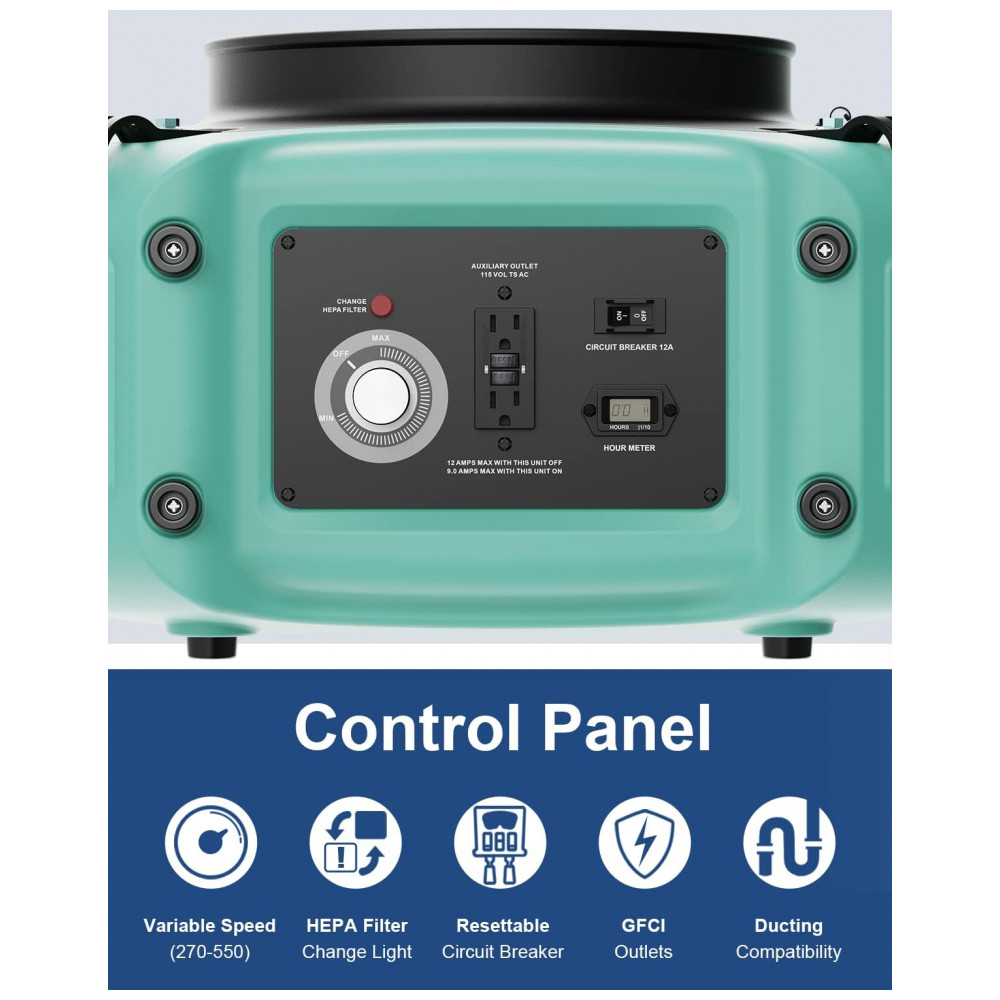 Purificador de Ar Industrial com Filtro HEPA de 3 Estágios e Saída GFCI ALORAIR PureAiro HEPA Max 770 Verde