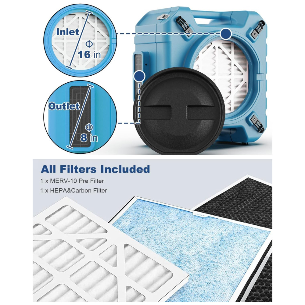 Purificador de Ar Industrial com Filtro HEPA Pro 870 com Filtragem de 3 Estágios 115V Alorair Azul