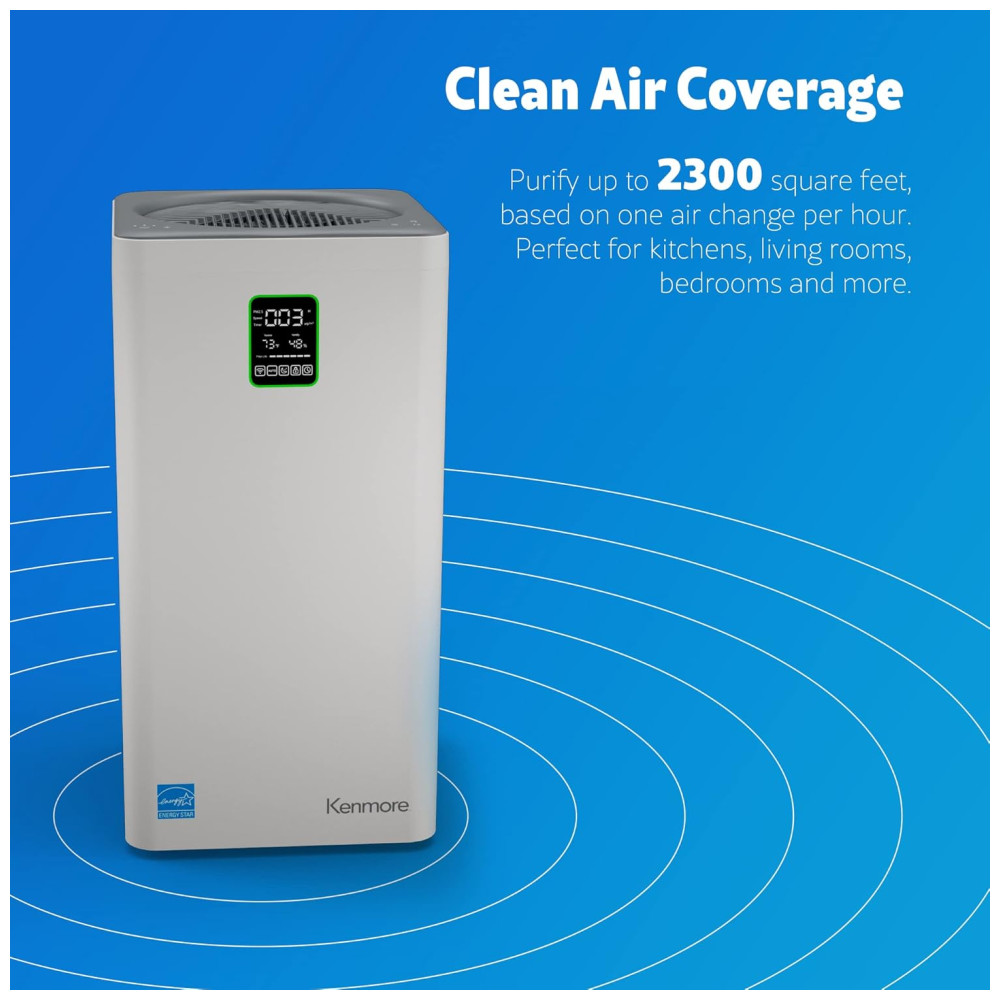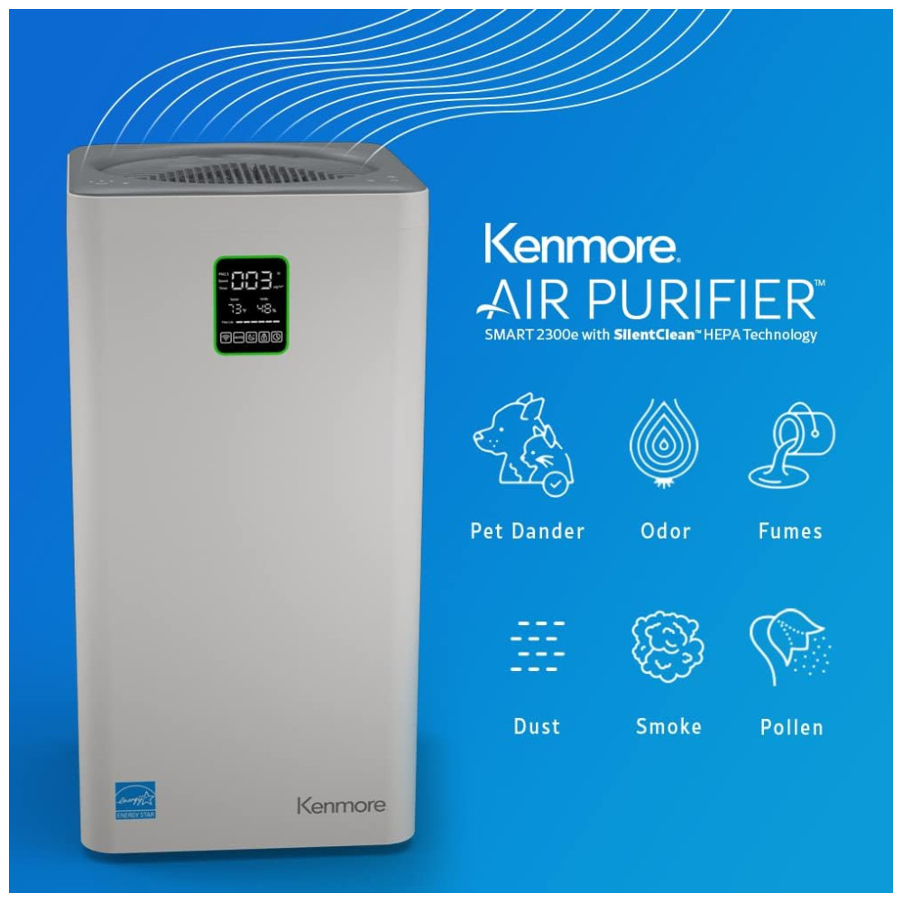 Purificador de Ar Kenmore PM4030 com Filtro True HEPA H13 Cobertura de até 213 metros quadrados Silencioso 24dB Filtragem HEPA 3 Estágios