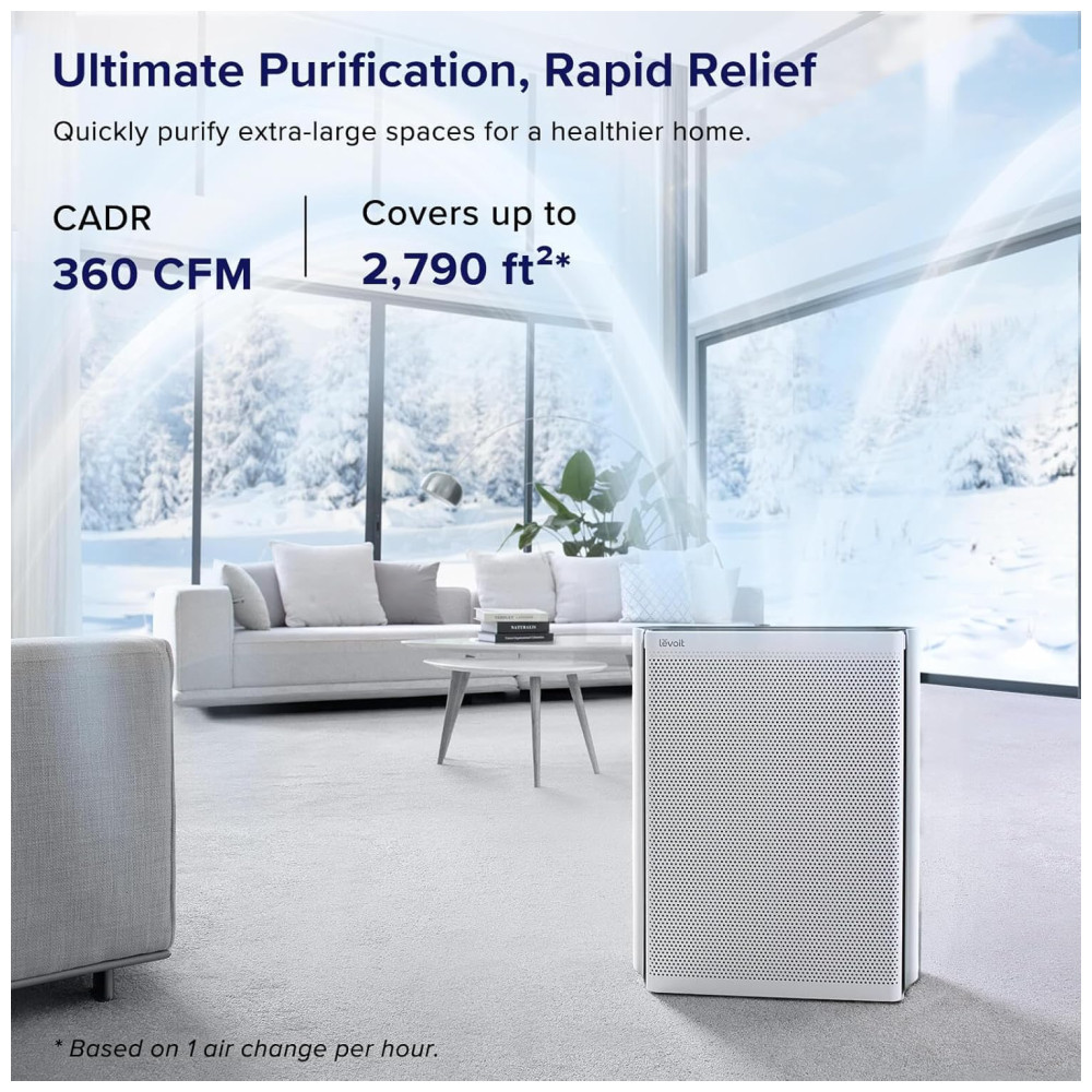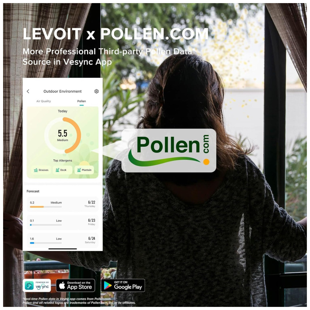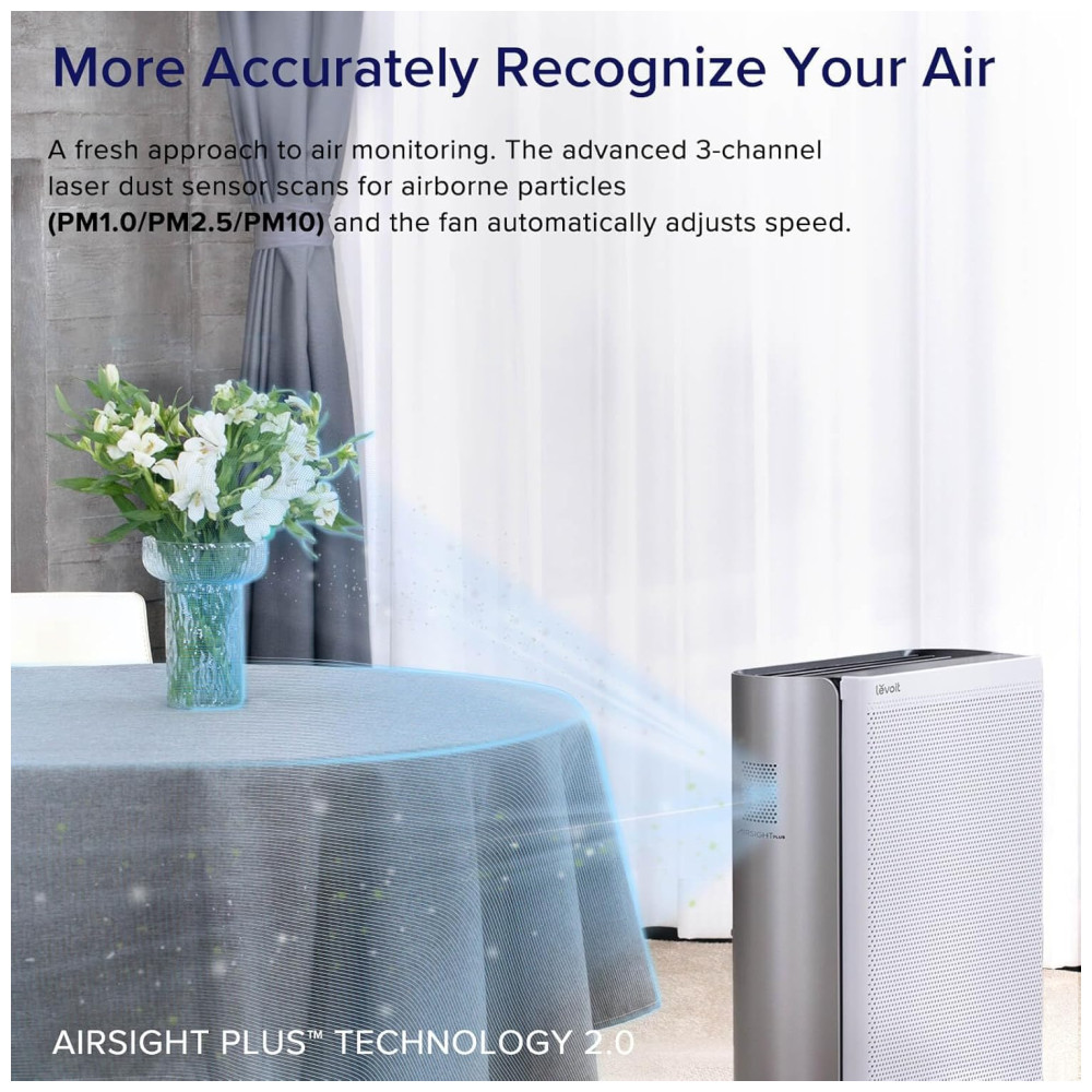 Purificador de Ar LEVOIT para Ambientes Grandes com Filtro Lavável e Monitor de Qualidade do Ar de 3 Canais WiFi Integrado