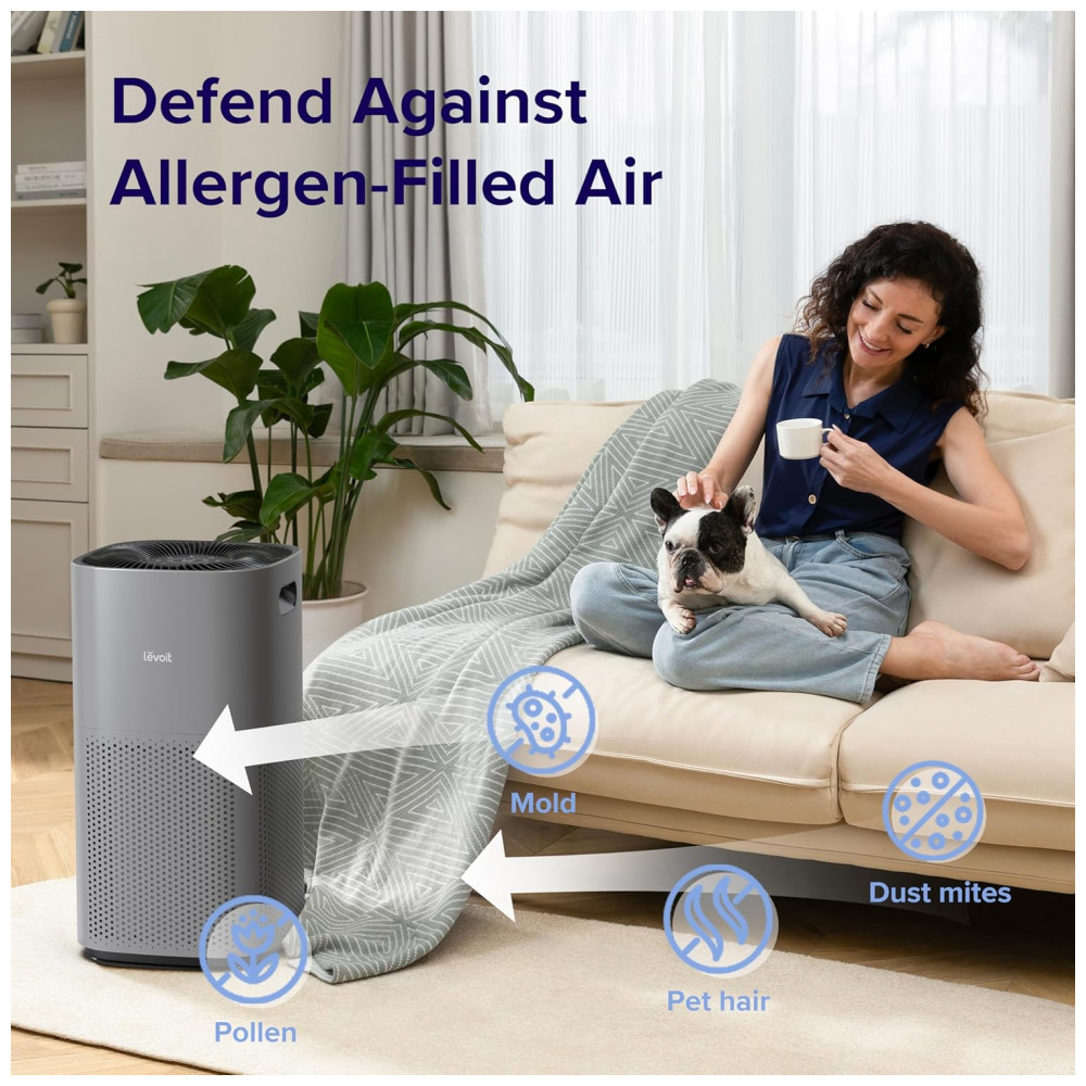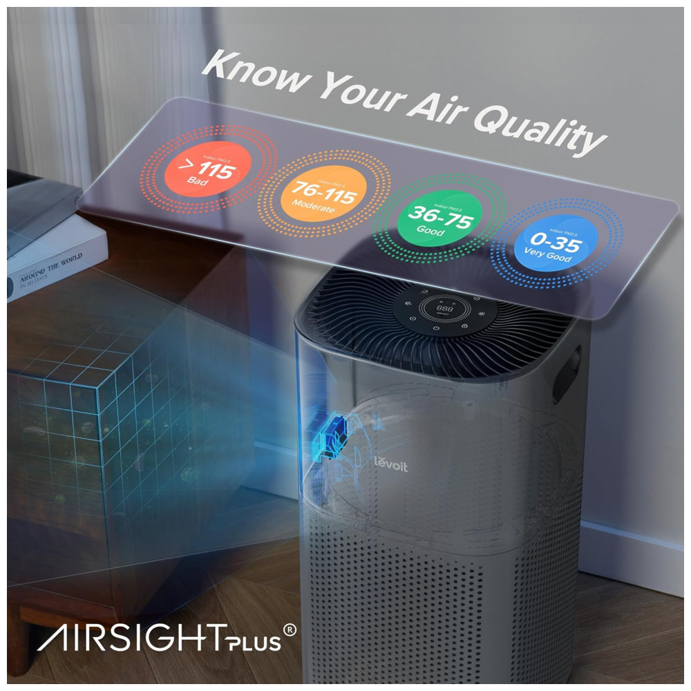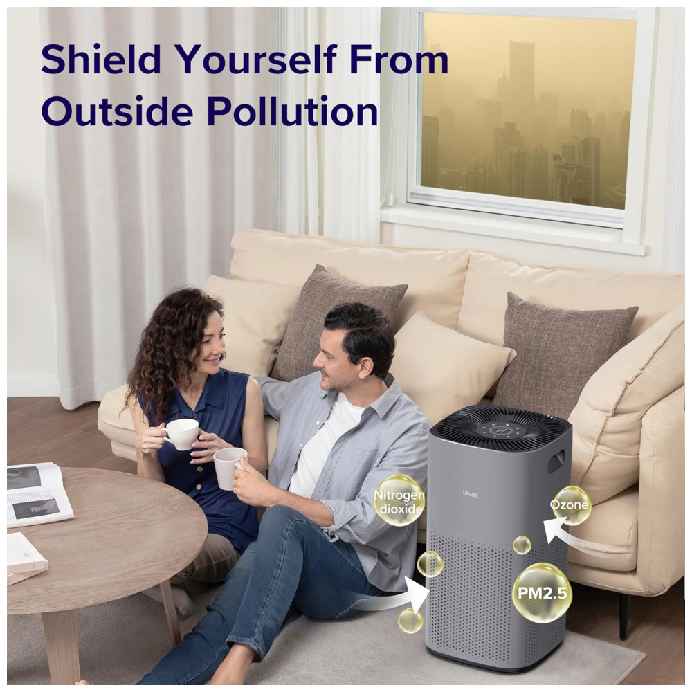 Purificador de Ar LEVOIT para Residências em Ambientes Amplos de até 147 m² com Wi-Fi Inteligente Monitor de Partículas Modo de Sono HEPA Filtro 3 em 1