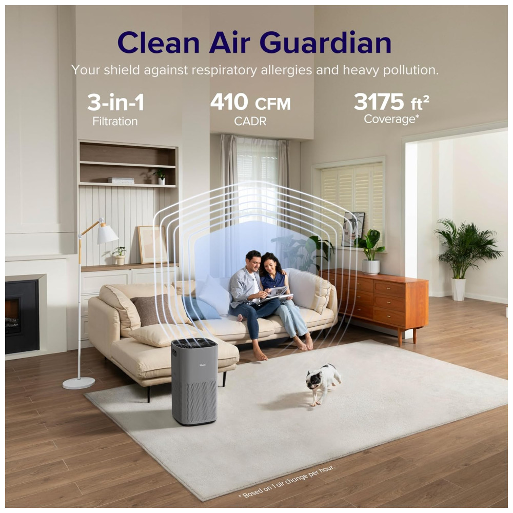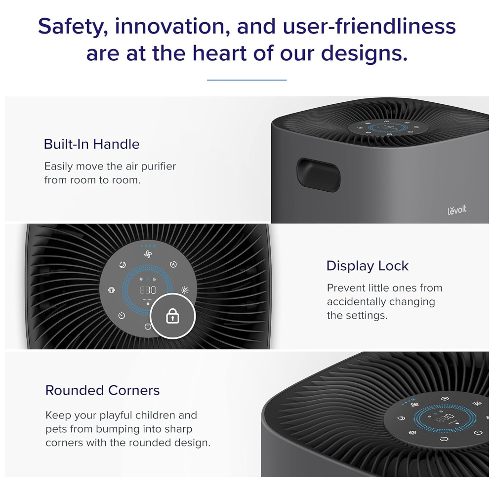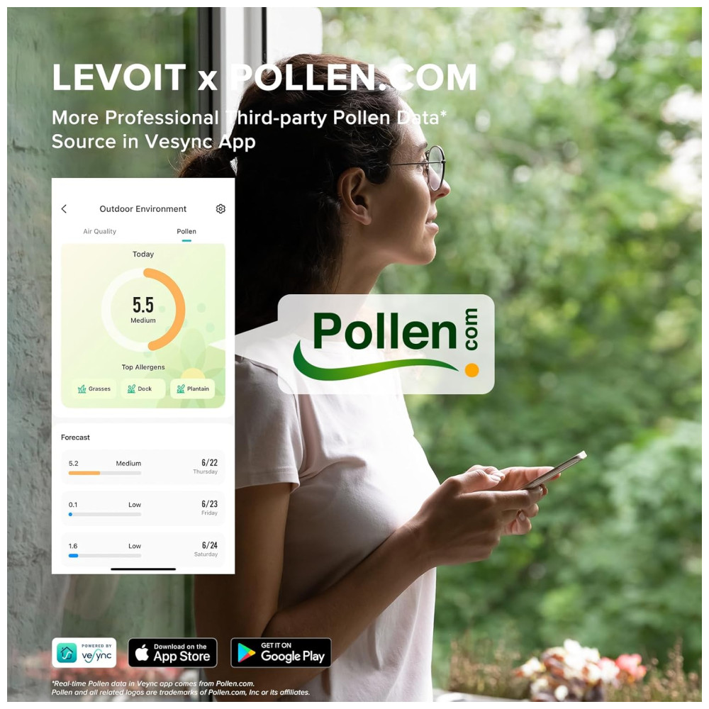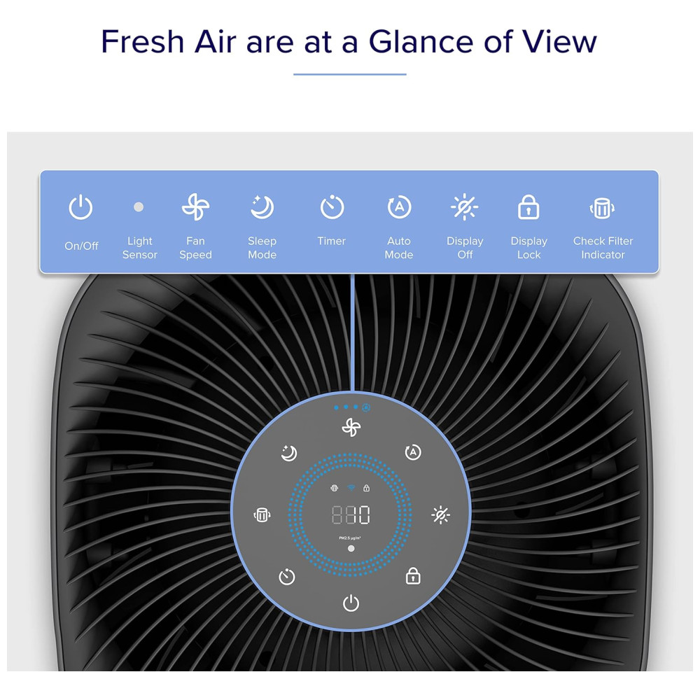 Purificador de Ar LEVOIT para Residências em Ambientes Amplos de até 147 m² com Wi-Fi Inteligente Monitor de Partículas Modo de Sono HEPA Filtro 3 em 1