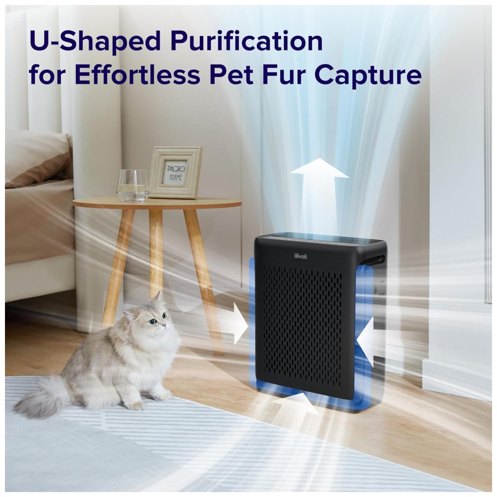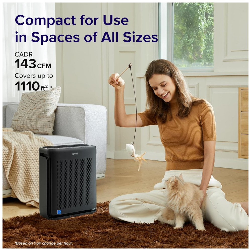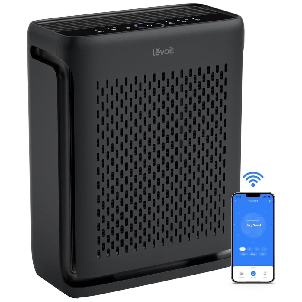 Purificador de Ar LEVOIT Vital 100SP Preto para Ambientes Amplos com Monitor de Qualidade do Ar Conexão WiFi Filtro Lavável Modo Noturno HEPA
