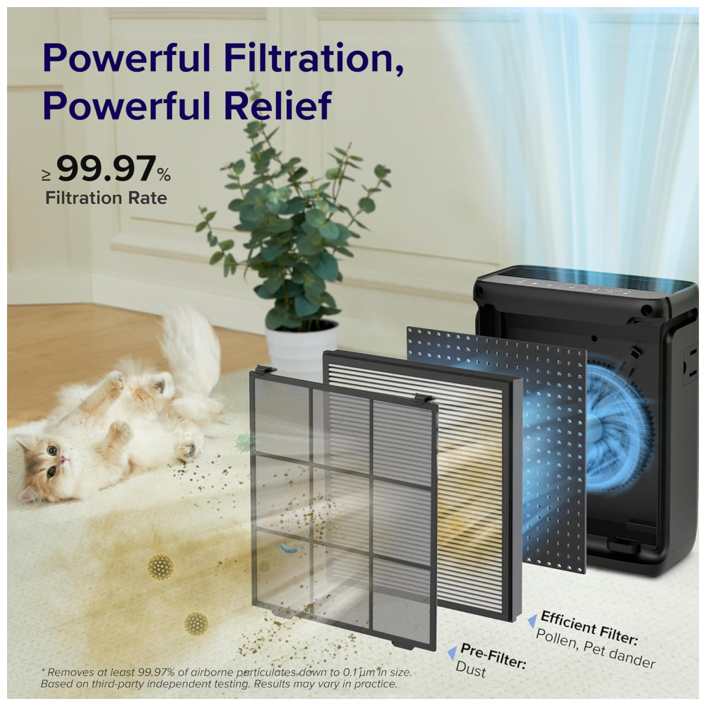Desfrute de ar puro e saudável em minutos com o Purificador de Ar Vital 100SP da LEVOIT. Com eficiência de filtração de 99,97% para partículas ultrafinas de 0,1 a 0,3 m, incluindo pólen, poeira e pelos de animais. O filtro HEPA de grau hospitalar remove odores, fumaça e compostos orgânicos voláteis (VOCs). O modo de Sono HEPA garante um funcionamento ultra silencioso, com redução da emissão de luz durante a noite. Controle o aparelho pelo app VeSync, programe horários de funcionamento e garanta a durabilidade do sistema de filtragem com a limpeza do Pré-Filtro lavável. Não arrisque danos ao aparelho, utilize somente os filtros originais da LEVOIT para melhor desempenho.