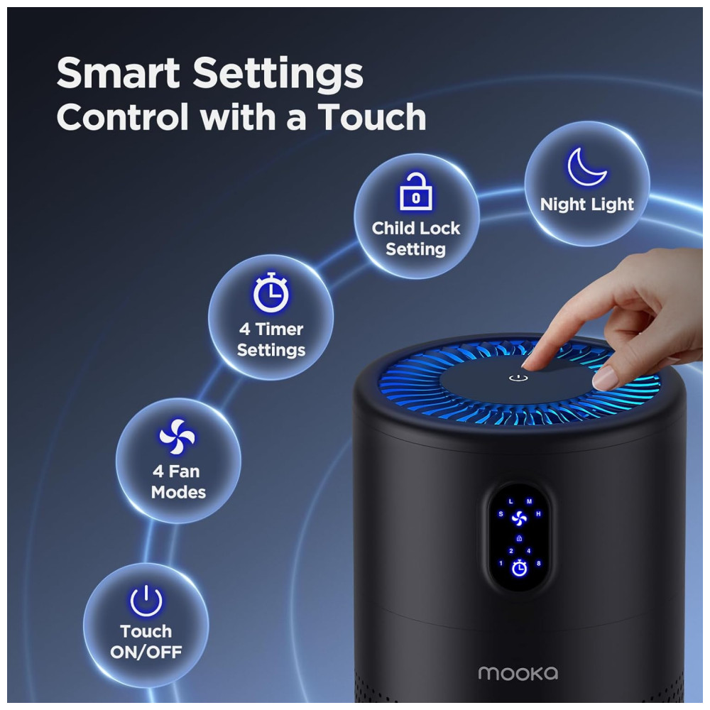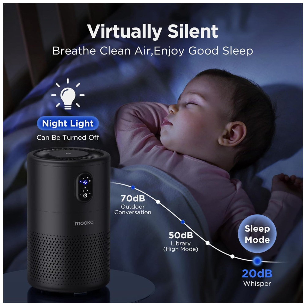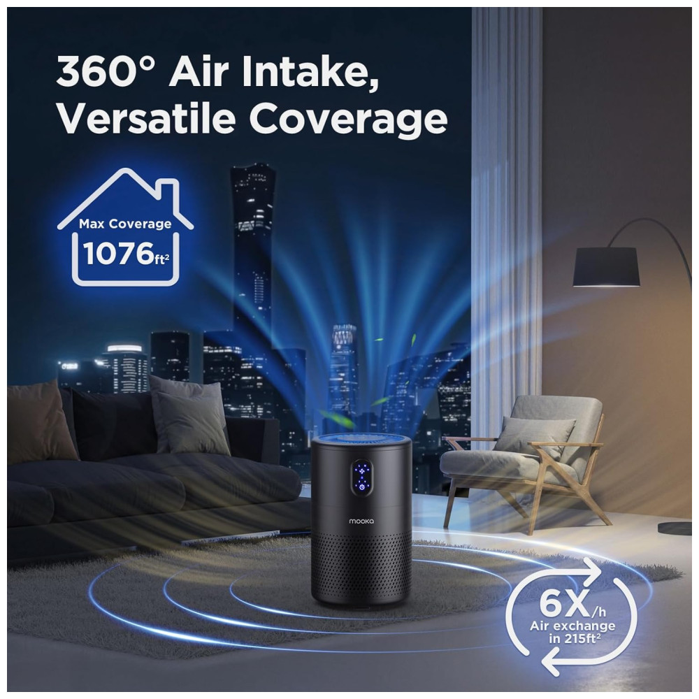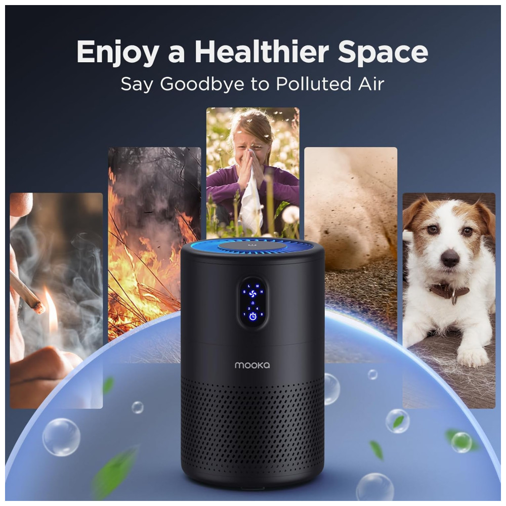 Purificador de Ar MOOKA para Ambientes Amplos de até 100 m² Filtro de Ar True HEPA H13 Elimina Odores Fumaça Poeira Pólen e Pelos de Animais