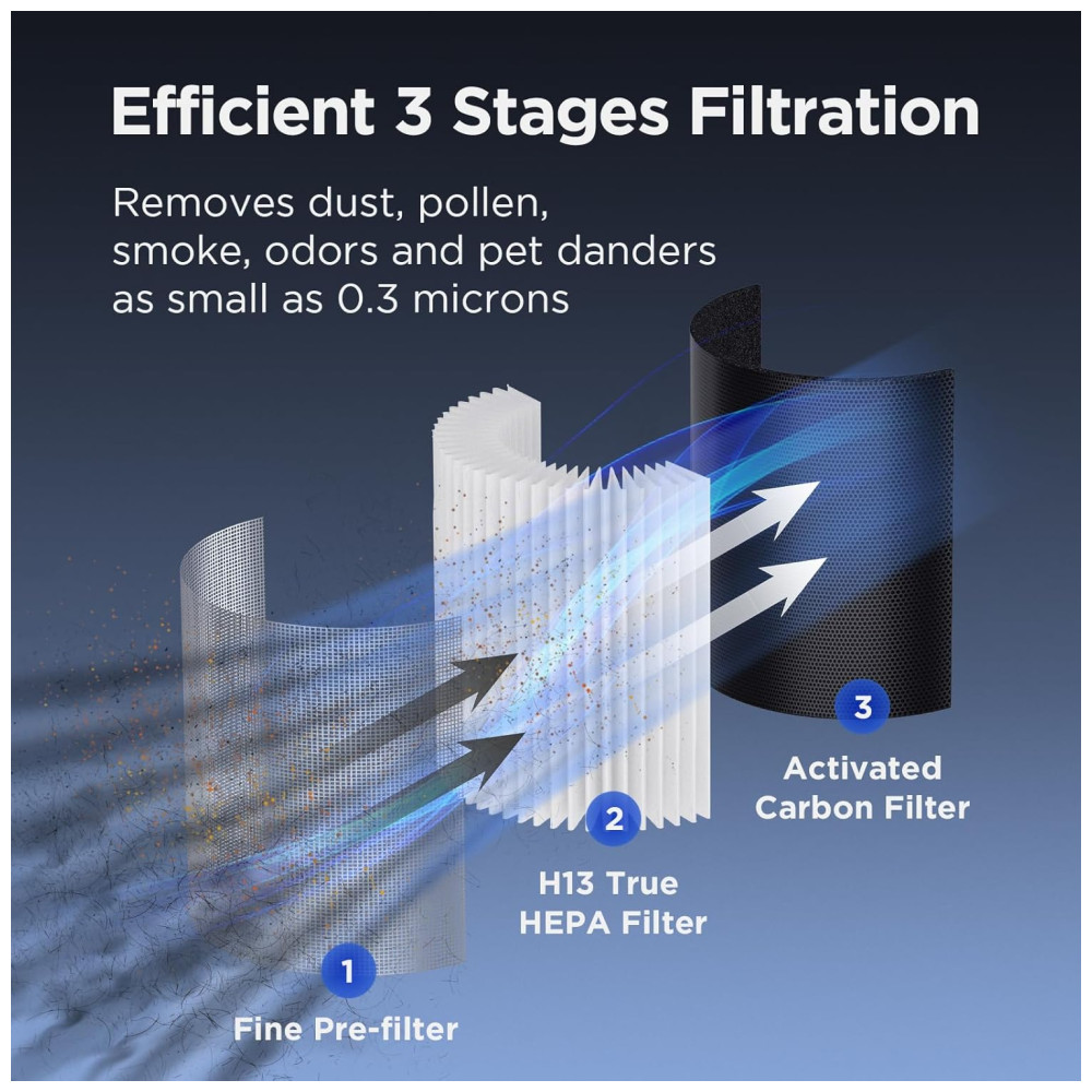 O Purificador de Ar MOOKA BD02L é ideal para ambientes grandes, com um sistema de filtragem de alta eficiência que cobre uma área de até 100 m². O design moderno se adapta a qualquer espaço, de quartos pequenos a grandes, salas de estar, escritórios, quartos de bebês, cozinhas e porões. Perfeito para proprietários de animais de estimação, bebês, crianças, idosos ou qualquer pessoa que deseje melhorar a qualidade do ar. Equipado com o filtro True HEPA H13, pré-filtro e filtro de carvão ativado de alta eficiência, captura pelos de animais, fumaça, odores e grandes partículas de poeira, removendo contaminantes do ar de até 0,3 mícrons. Extremamente silencioso e econômico, graças ao novo motor sem escovas, com nível de ruído de 20dB quase imperceptível. Possui trava de segurança infantil e modo de baixo consumo. Com 4 configurações de temporizador, 4 modos de velocidade do ventilador e luz noturna suave, oferece a opção de ajuste perfeito para suas necessidades. Aproveite a tecnologia avançada de purificação de ar com o Purificador MOOKA!