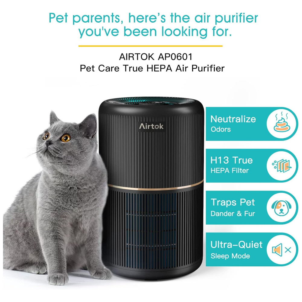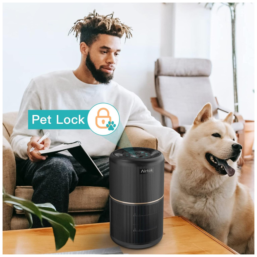 Purificador de Ar Multifuncional com Filtro HEPA H13 para Ambientes de até 35m² – 12 Esponjas de Aromatização – Cor PretoAIRTOK