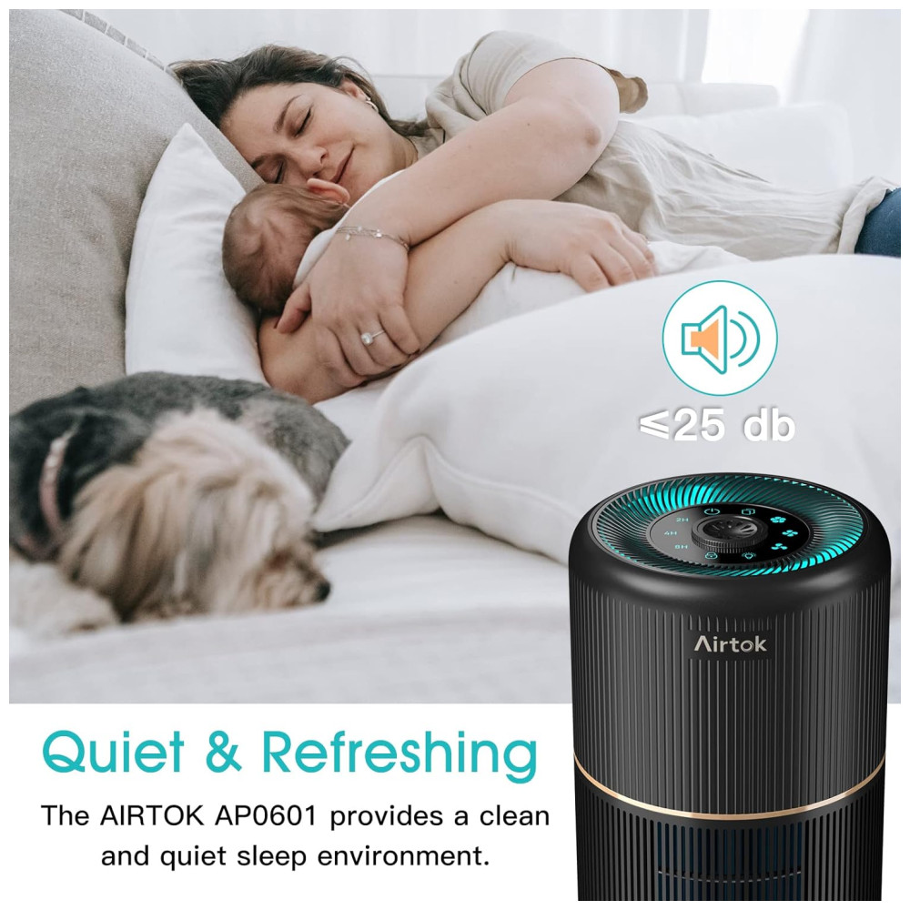 O Purificador de Ar 4 em 1 da AIRTOK é ideal para manter o ar da sua casa ou escritório limpo e fresco. Com um filtro que captura 99% das partículas maiores que 0.1 mícron, incluindo pólen, poeira, fumaça e pelos de animais, e uma camada de carvão ativado que elimina odores comuns. Além disso, possui um motor DC Brushless avançado, potente e econômico, com baixo consumo de energia. O purificador também conta com 3 velocidades de ventilador, timer de 2H, 4H ou 8H, luz noturna, baixo nível de ruído e trava de segurança para crianças. Acompanha 12 esponjas de fragrância para você adicionar seu óleo essencial favorito e perfumar o ambiente. Com design compacto e elegante na cor preta, é certificado pela FCC, CARB e ETL. Recomendado para ambientes de até 35m², como escritórios e quartos.