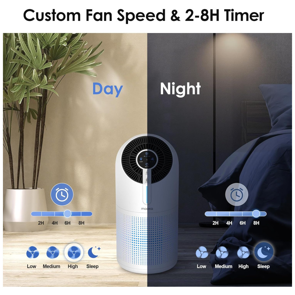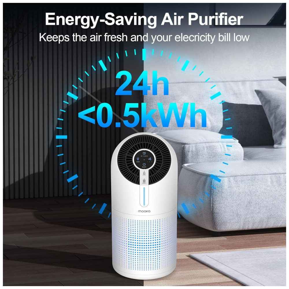Purificador de Ar para Ambientes até 100m² com Filtro H13 HEPA 4 Modos de Luz Noturna e Temporizador 110V MOOKA M02 Branco