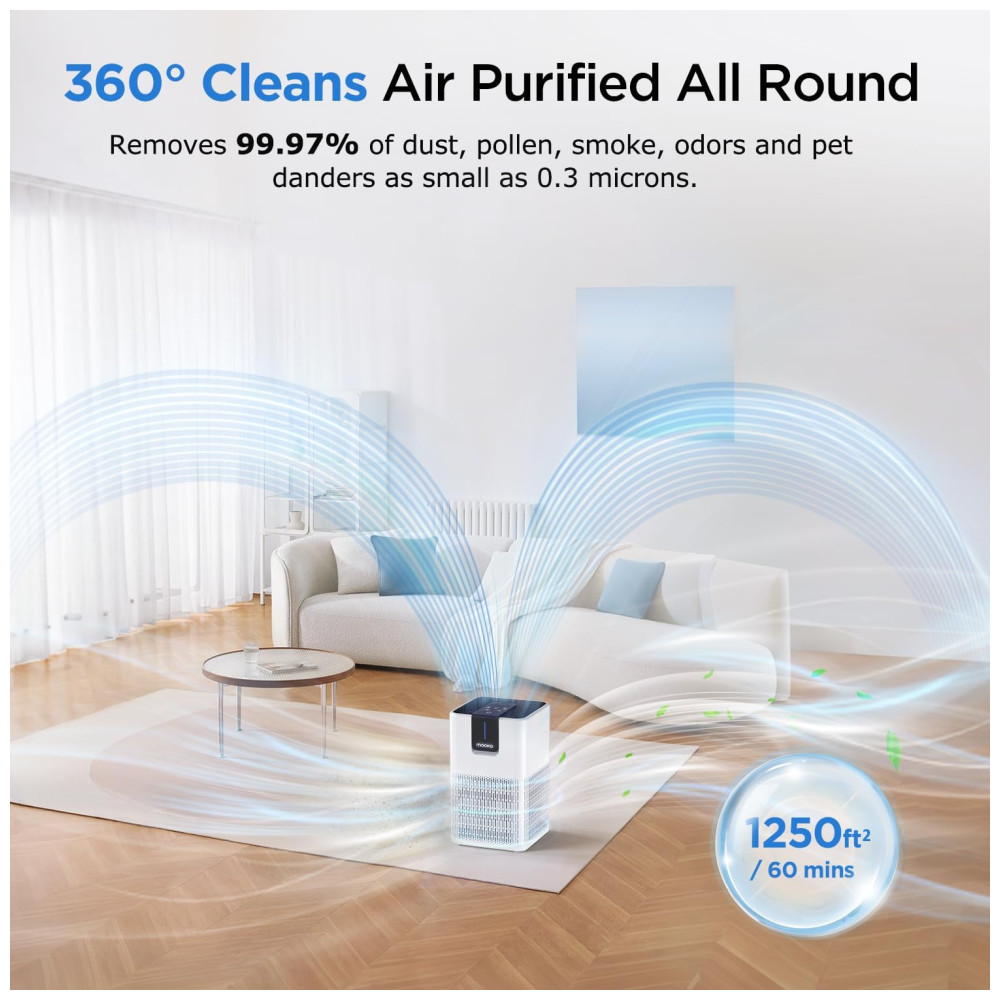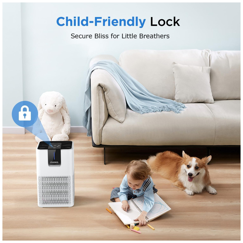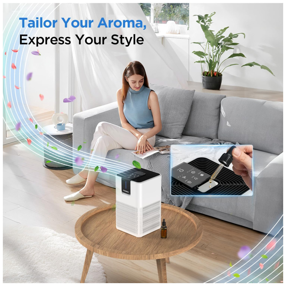 Purificador de Ar para Ambientes até 116m² com Filtro H13 HEPA Função de Aromaterapia e Modo de Suspensão Silencioso de 15dB 110V MOOKA M05 Branco
