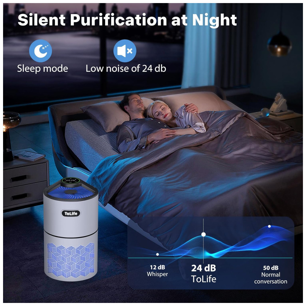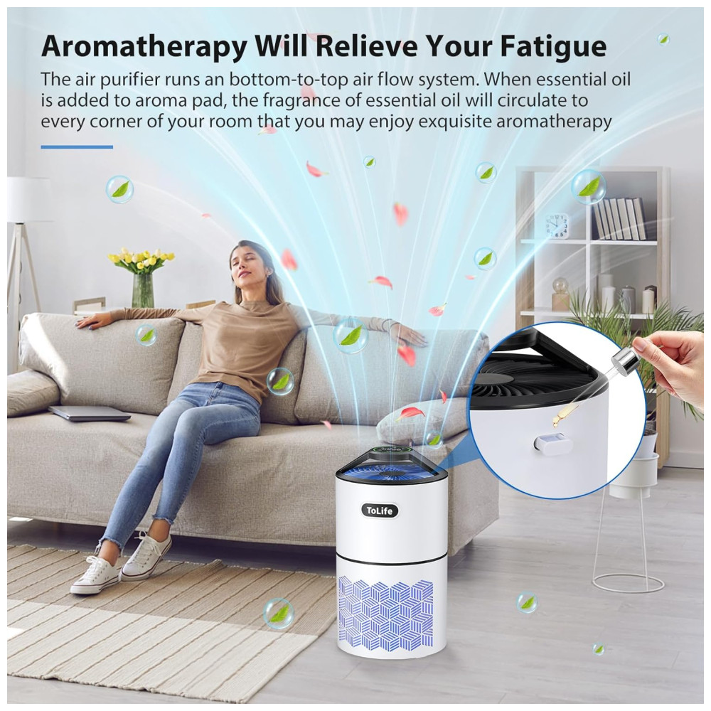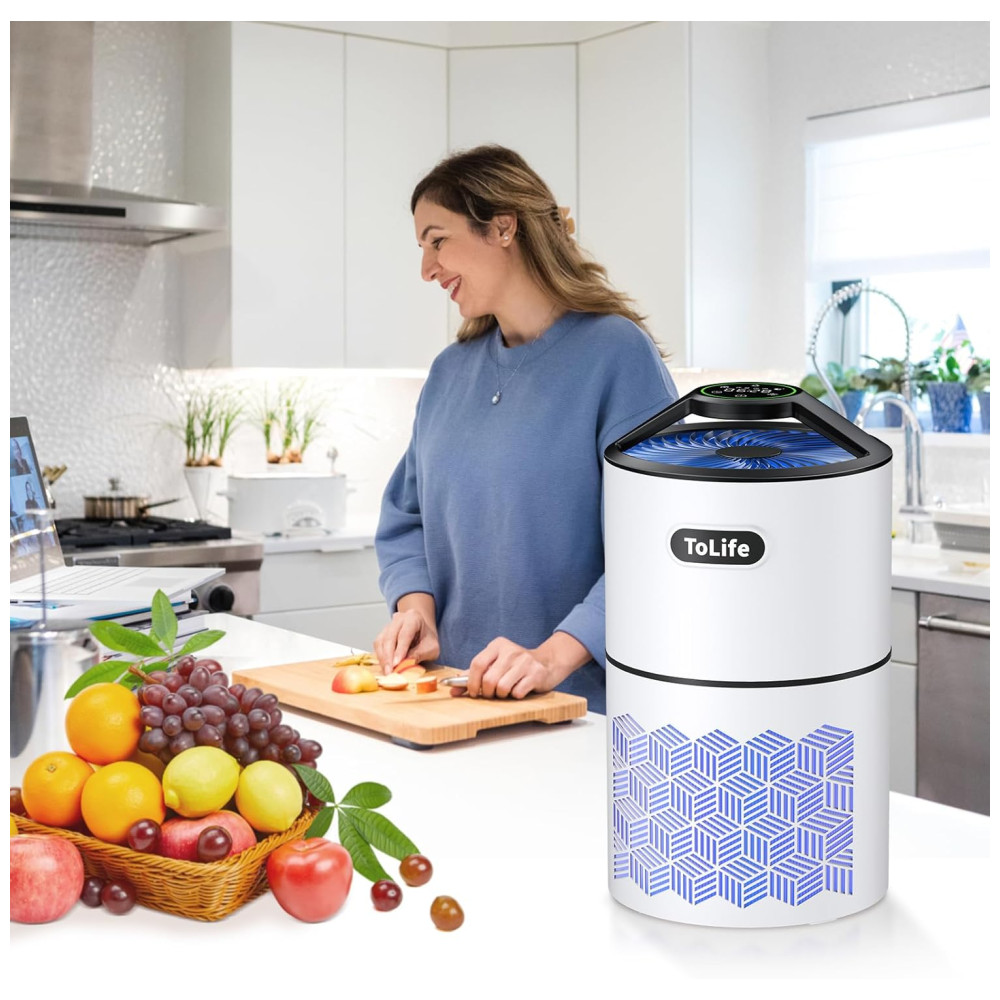Purificador de Ar para Ambientes até 120m² com Filtro HEPA Automático Temporizador Função de Aromaterapia e Visor LED 110V ToLife K1 Plus Branco