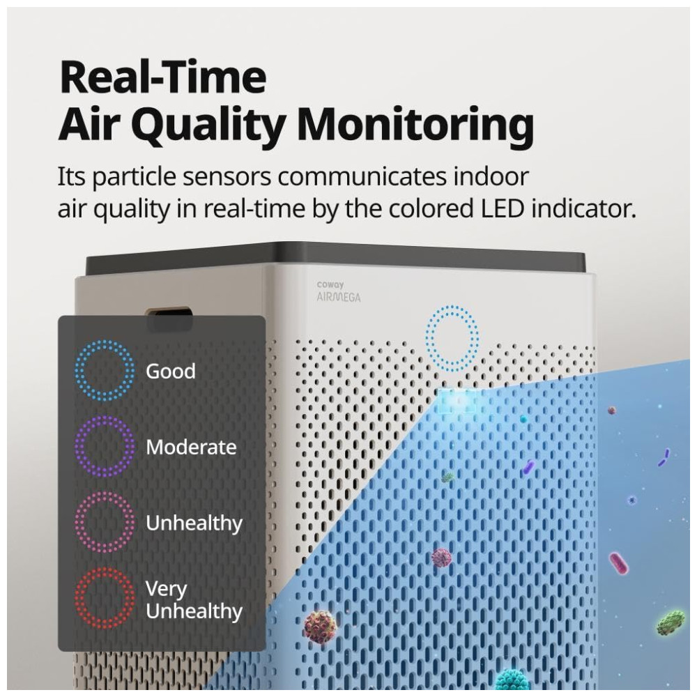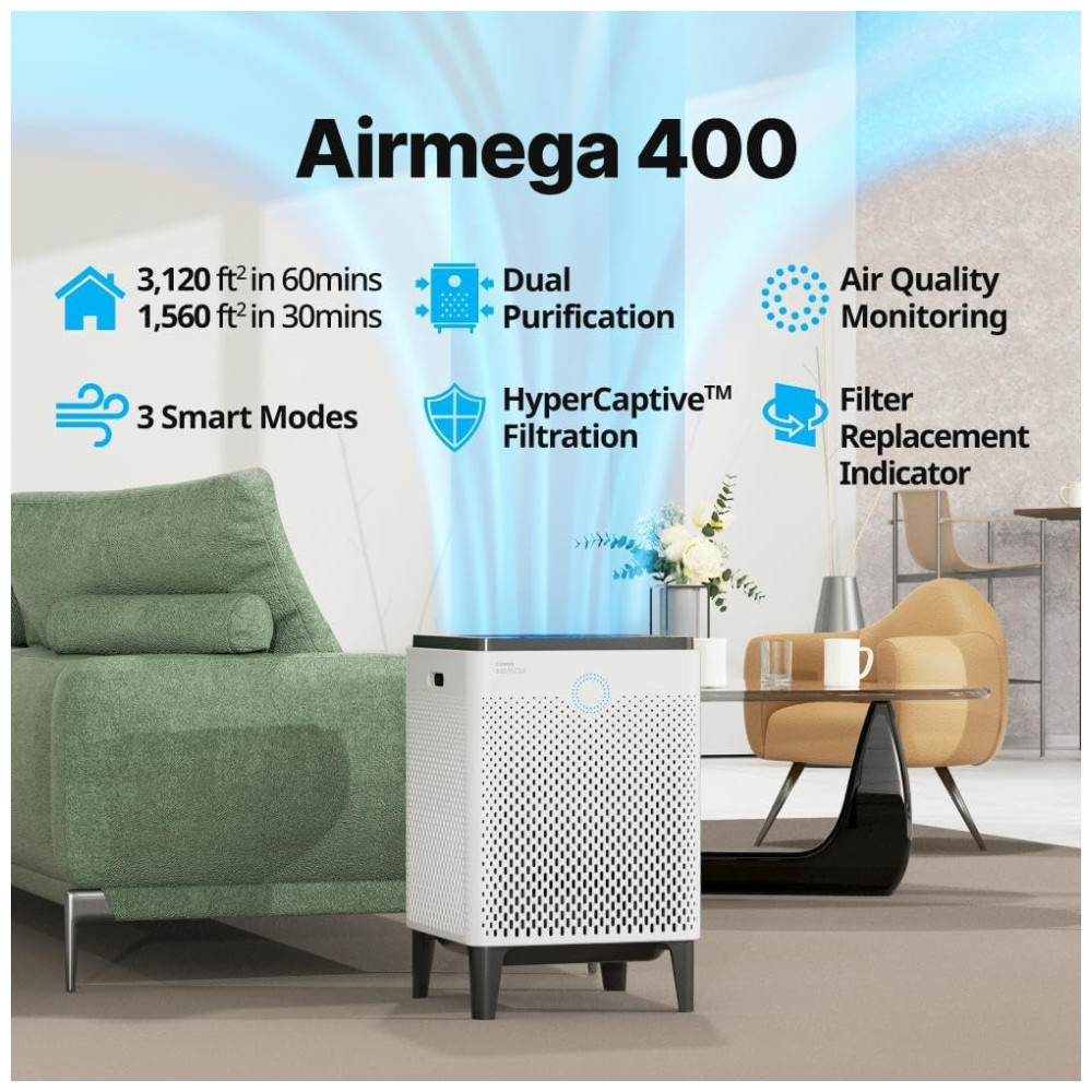 O Coway Airmega 400 é um purificador de ar avançado que proporciona uma limpeza inteligente, eficaz e silenciosa para o ambiente da sua casa. Equipado com o sistema de filtragem HyperCaptive, ele remove 99,999% das partículas do ar, incluindo pólen, poluentes e alérgenos, além de reduzir 99% dos compostos orgânicos voláteis (VOCs) e odores.