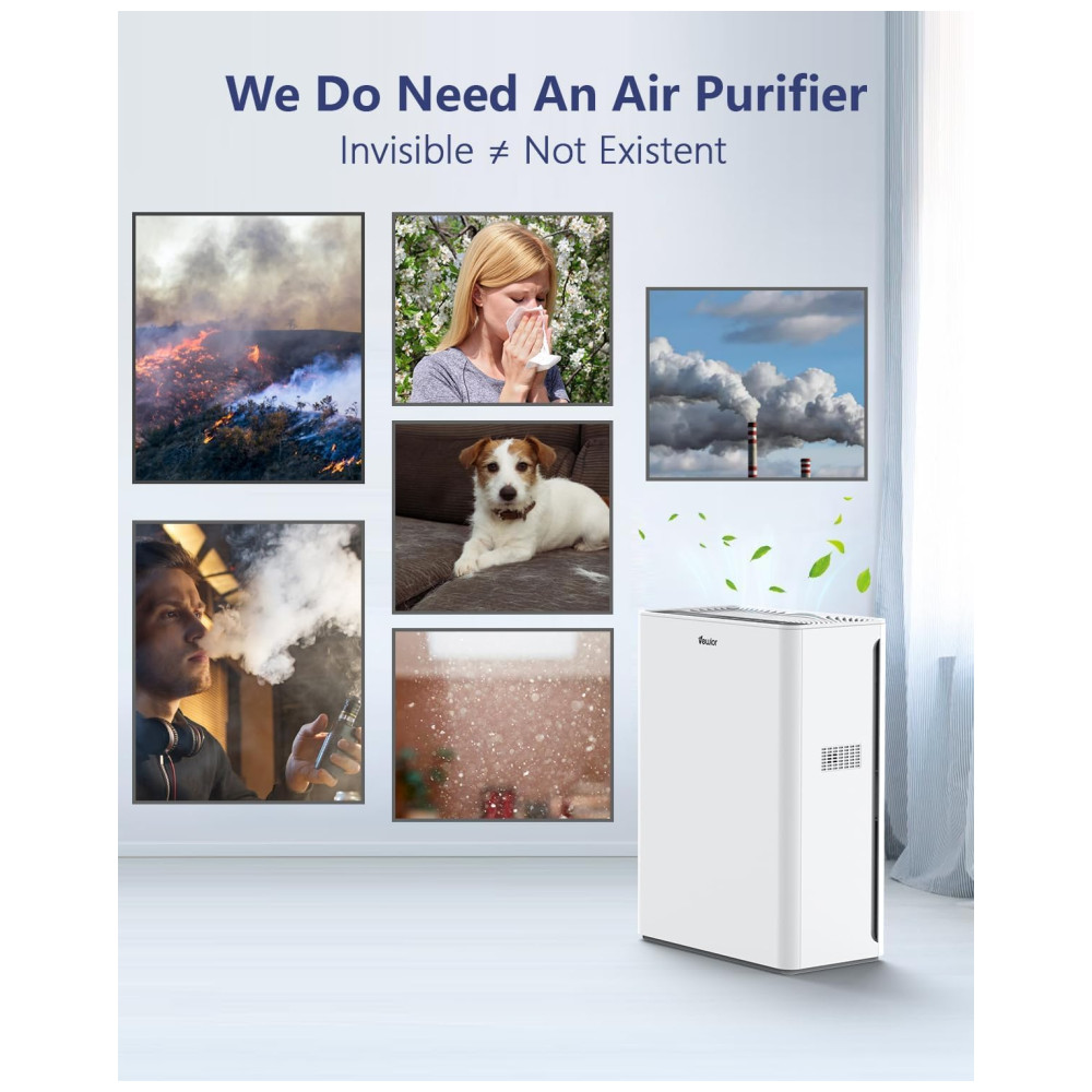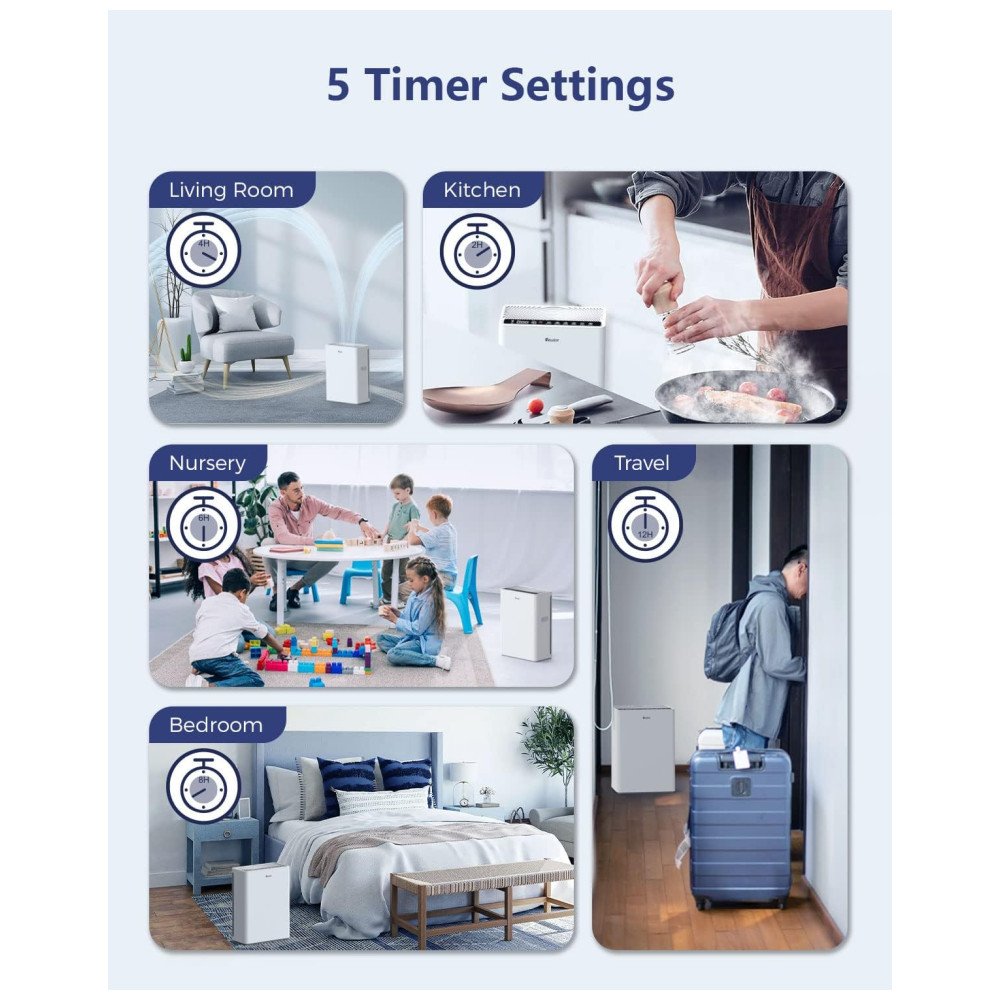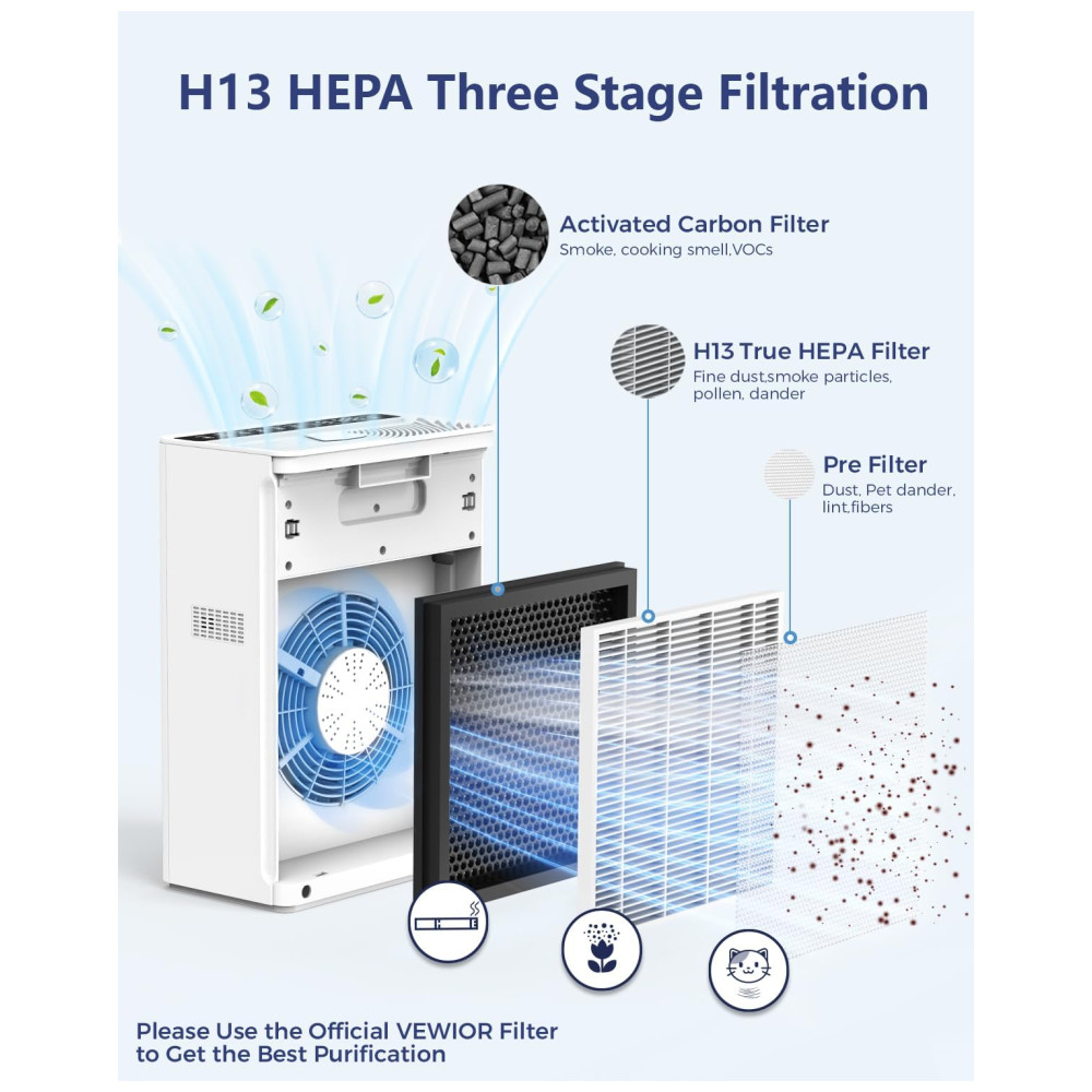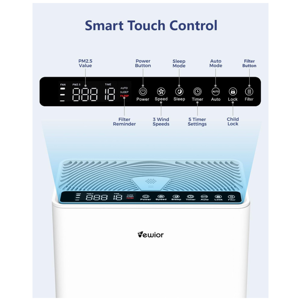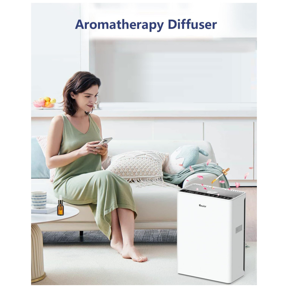 Purificador de Ar para Ambientes até 160m² com Filtro H13 HEPA Esponja Temporizador Capa de Filtro Lavável e Função de Aromaterapia 110V VEWIOR Branco