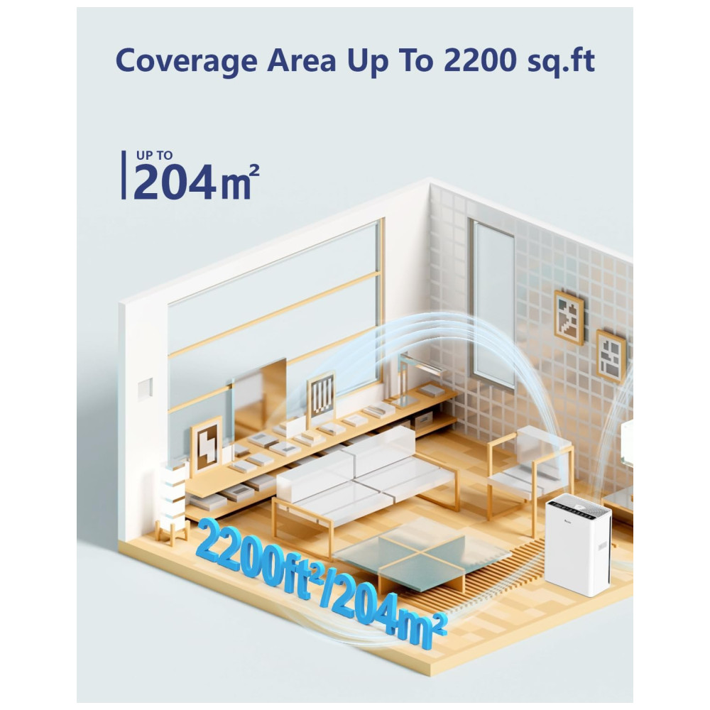 Este purificador de ar de alta eficiência é ideal para manter o ar fresco em ambientes amplos de até 160m2. Equipado com um sistema de filtragem de 3 estágios, que inclui um pré-filtro, um filtro HEPA e um filtro de carvão ativado, ele renova o ar 5 vezes por hora, garantindo um ambiente saudável.
