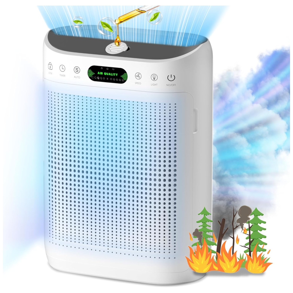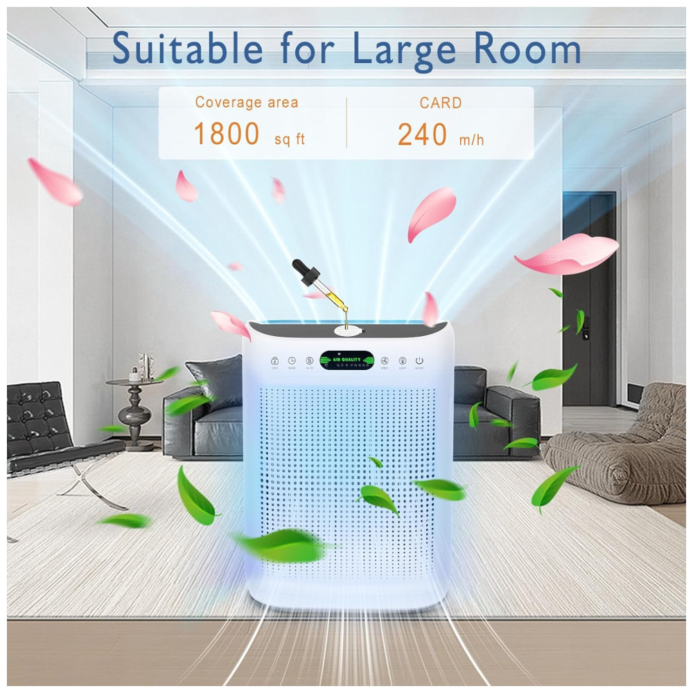 Além disso, a função de temporizador permite programar o purificador para operar por 1, 2, 4, 6 ou 8 horas, ajudando a economizar energia. Você também pode adicionar algumas gotas do seu óleo essencial favorito na esponja de aromaterapia localizada na parte superior do purificador, trazendo um aroma agradável ao ambiente.