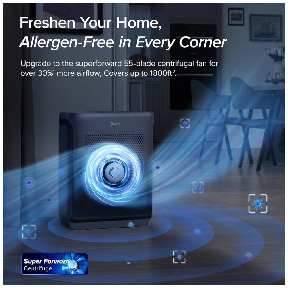 Purificador de Ar para Ambientes até 167m² com Filtros Laváveis Monitor de Qualidade Wi-Fi e Modo de Suspensão 110V LEVOIT Preto