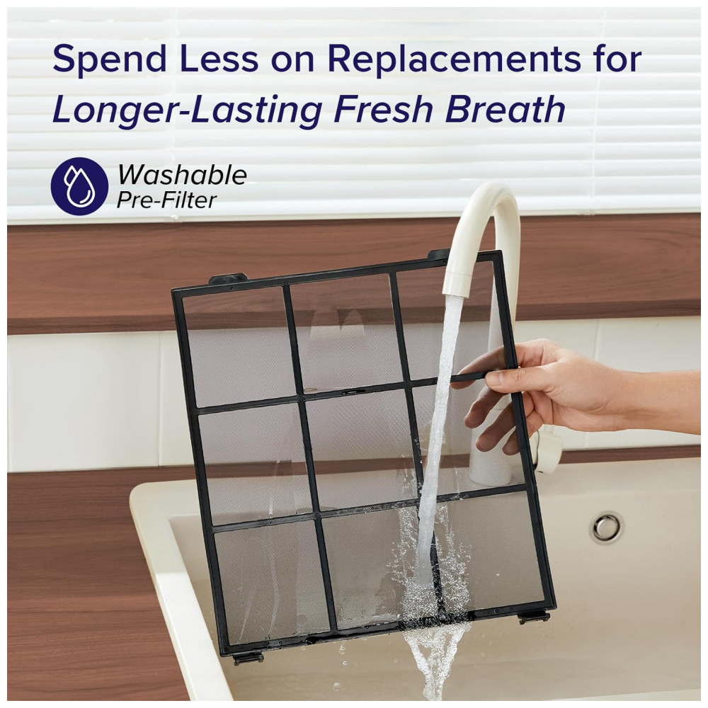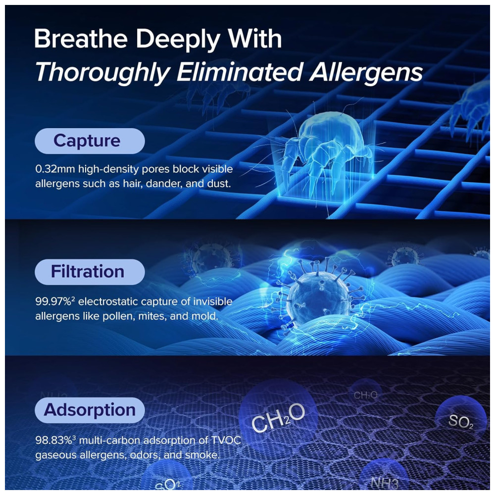 O Levoit Vital 200SP oferece um desempenho excepcional na filtragem de partículas ultrafinas, com uma eficiência de 99,97% para partículas transportadas pelo ar de 0,1 a 0,3 mícron, incluindo alérgenos como pólen, poeira e pelos de animais. Ele é capaz de purificar o ar em espaços de até 1800 pés quadrados, fazendo isso uma vez por hora, enquanto remove pelos de animais e odores, tudo com um consumo de energia eficiente.